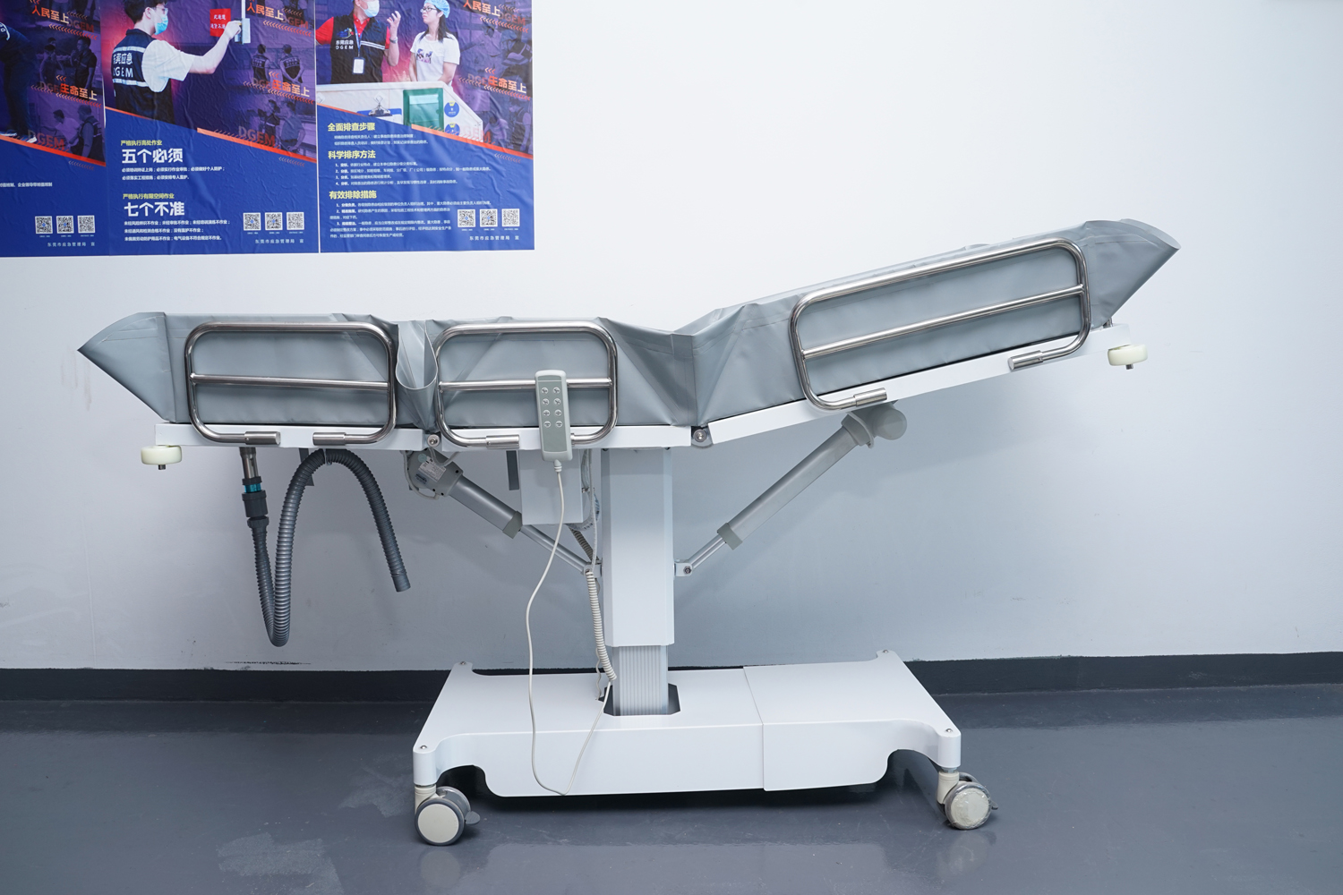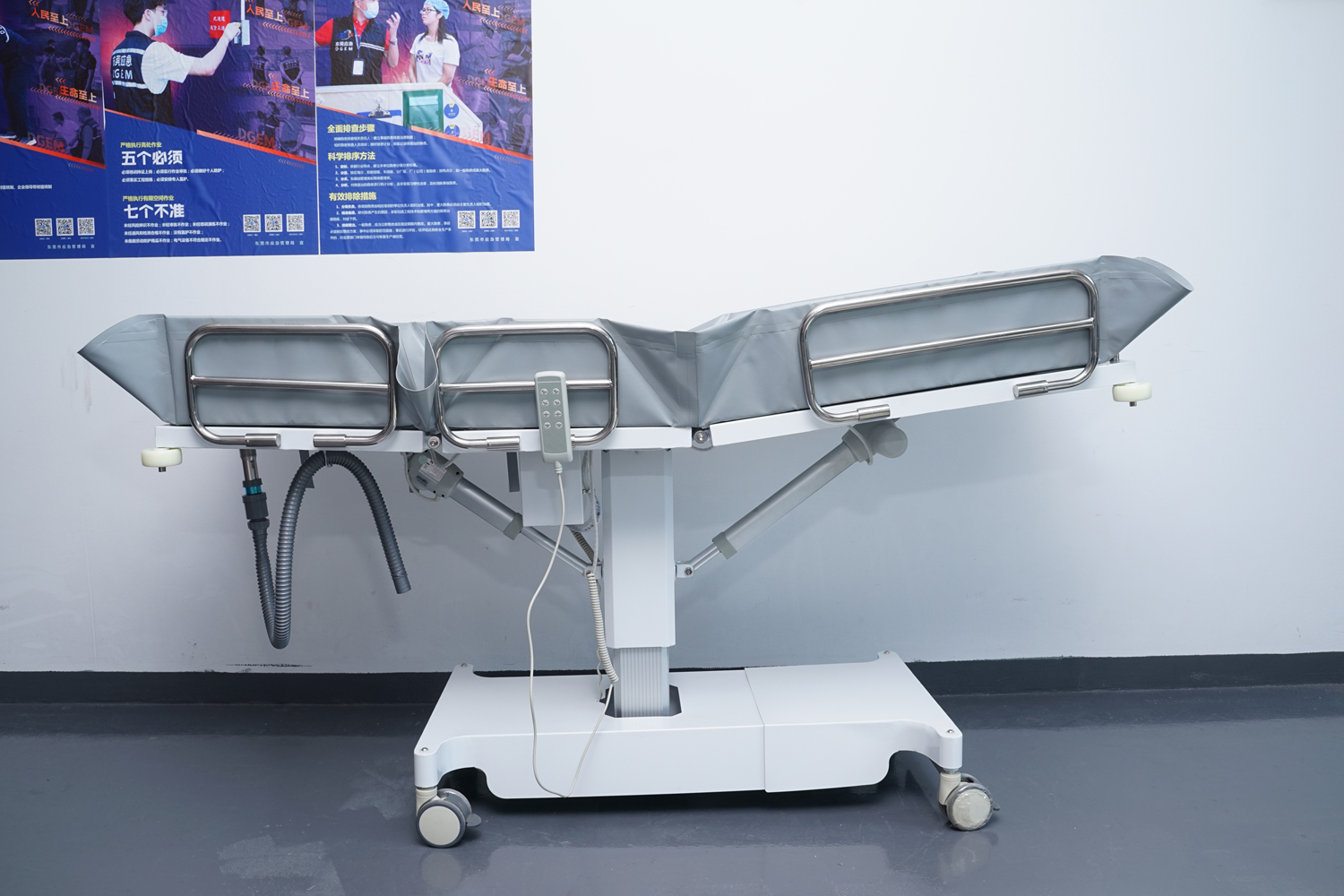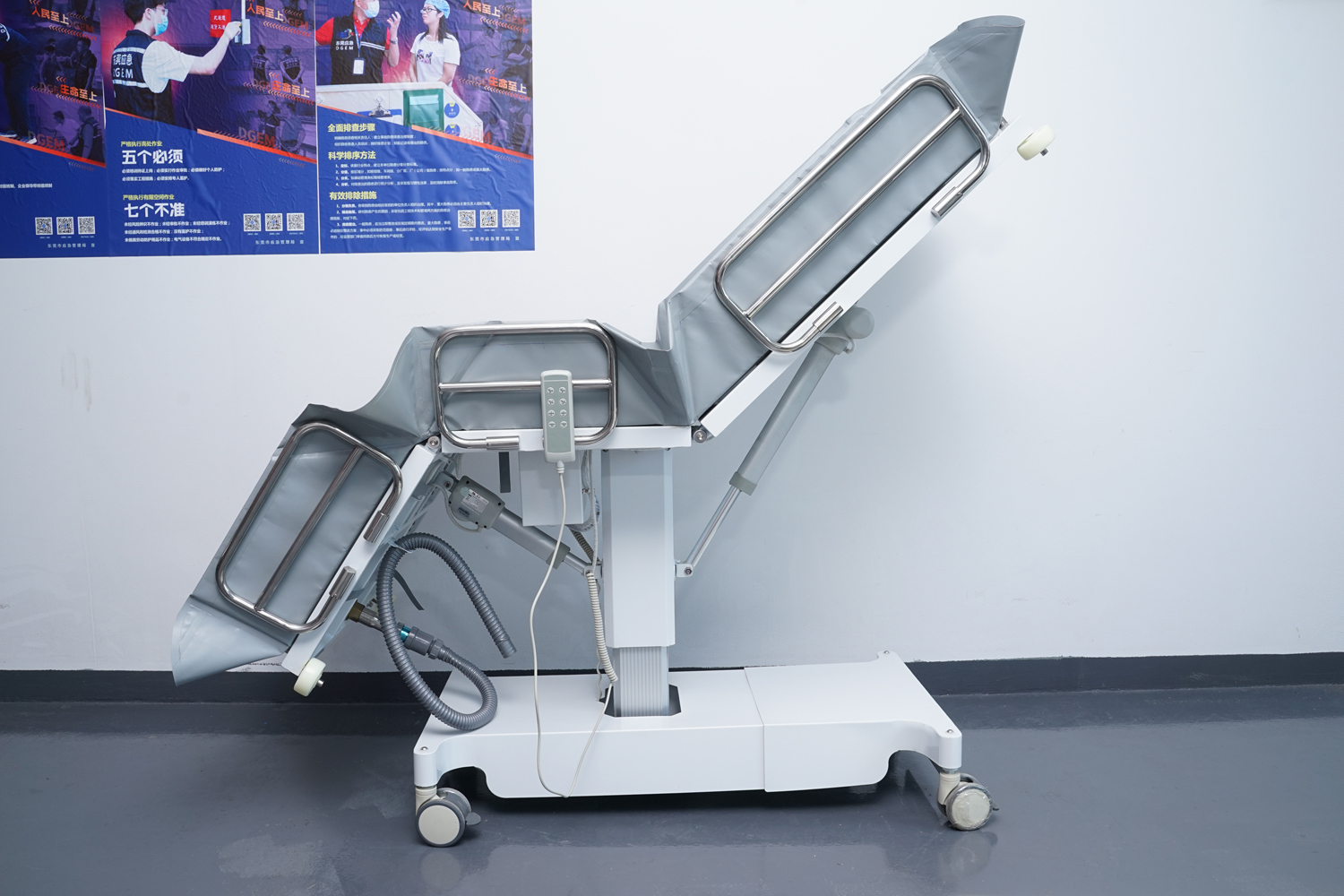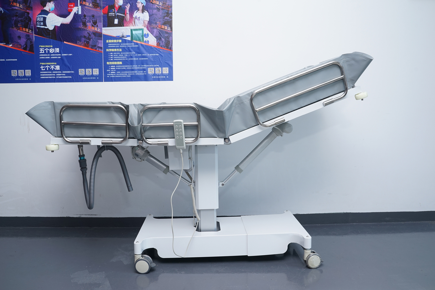 連接件、緊固件、旋轉(zhuǎn)件、護欄等:304不銹鋼; 表處理:整體表面戶外防水烤漆處理;(冬天觸摸床體不冰涼) 防 護:床體四角均安裝4寸防撞輪。 浴 槽:采用高韌性環(huán)保皮劃艇料制成,材料通過REACH、ROSH、EN71等標(biāo)準(zhǔn);柔軟舒適,耐高溫/嚴(yán)寒(+80°-10°),不易變型,不易老化;可拆下清潔消毒。 填 充:進口環(huán)保高密度EVA,柔軟舒適不變形。 平躺尺寸:長1910mm×寬650mm(床面寬度)×高550-850 mm(床面高度),收縮尺寸:長度最小值為1100mm; 承 重:≦150kg。 控制:兩側(cè)腳踏板控制,解放雙手。 顏 色:乳白色