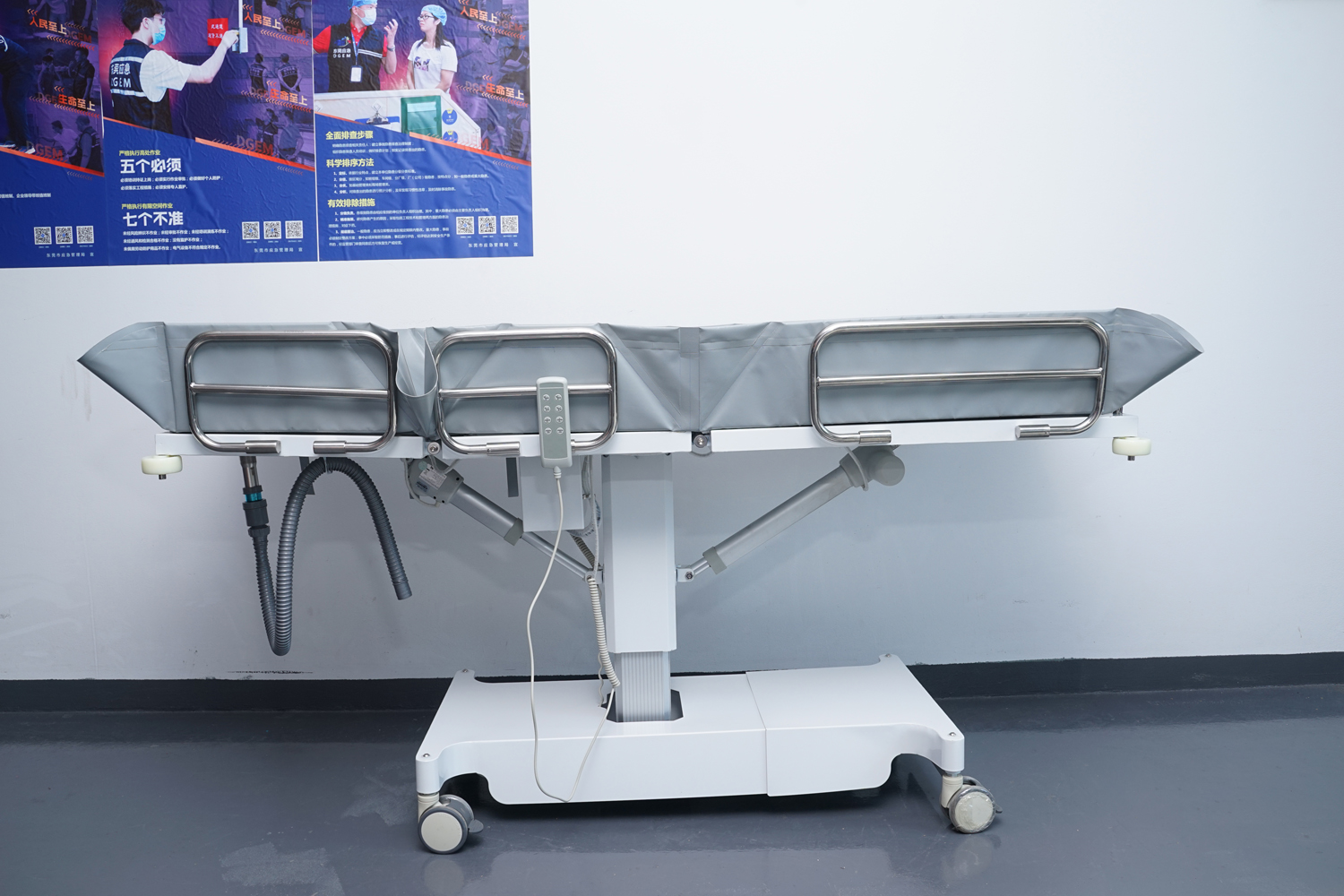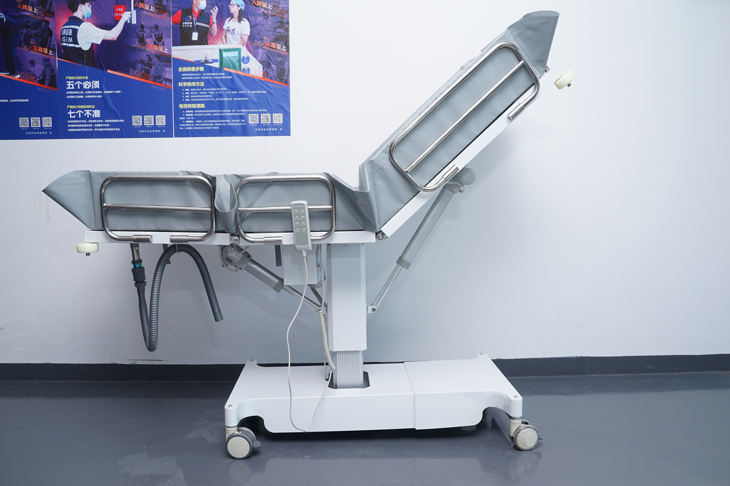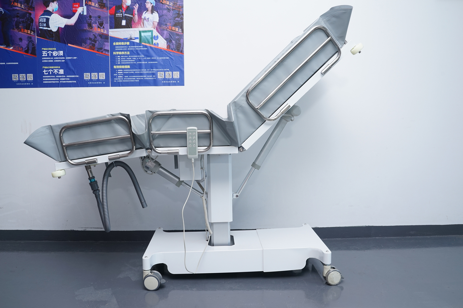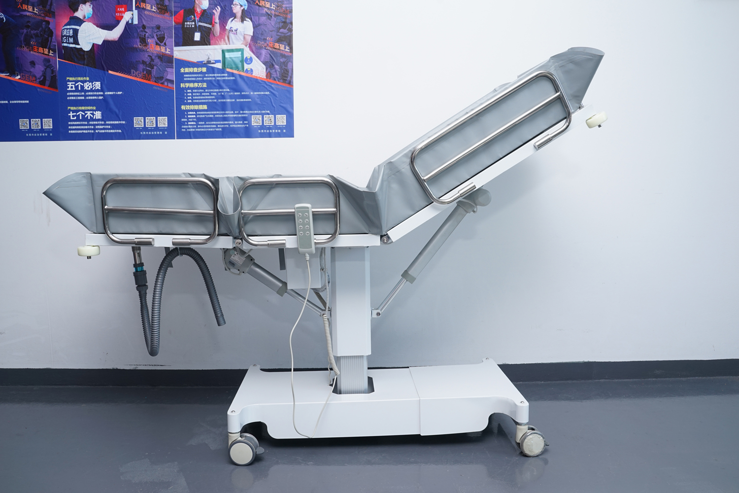 連接件、緊固件、旋轉(zhuǎn)件、護欄等:304不銹鋼; 表處理:整體表面戶外防水烤漆處理;(冬天觸摸床體不冰涼) 防 護:床體四角均安裝4寸防撞輪。 浴 槽:采用高韌性環(huán)保皮劃艇料制成,材料通過REACH、ROSH、EN71等標(biāo)準(zhǔn);柔軟舒適,耐高溫/嚴(yán)寒(+80°-10°),不易變型,不易老化;可拆下清潔消毒。 填 充:進口環(huán)保高密度EVA,柔軟舒適不變形。 平躺尺寸:長1910mm×寬650mm(床面寬度)×高550-850 mm(床面高度),收縮尺寸:長度最小值為1100mm; 承 重:≦150kg。 控制:兩側(cè)腳踏板控制,解放雙手。 顏 色:乳白色