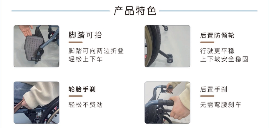 1, magnesium alloy wheel push wheelchair, the implementation of Super Easy, net weight of 11 kg 2, about the folding foot pedal, can turn up, easy to get on and off 3, self-row, can be implemented 4, front and rear brakes, safety and stability 5, lengthening anti-dumping wheel, effectively prevent dumping