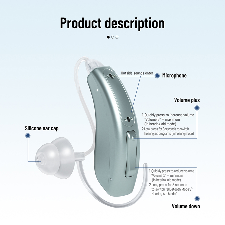 This hearing aid is digital 16 channel EQ 32 channel RIC style,Suitable for individuals with moderate hearing loss.