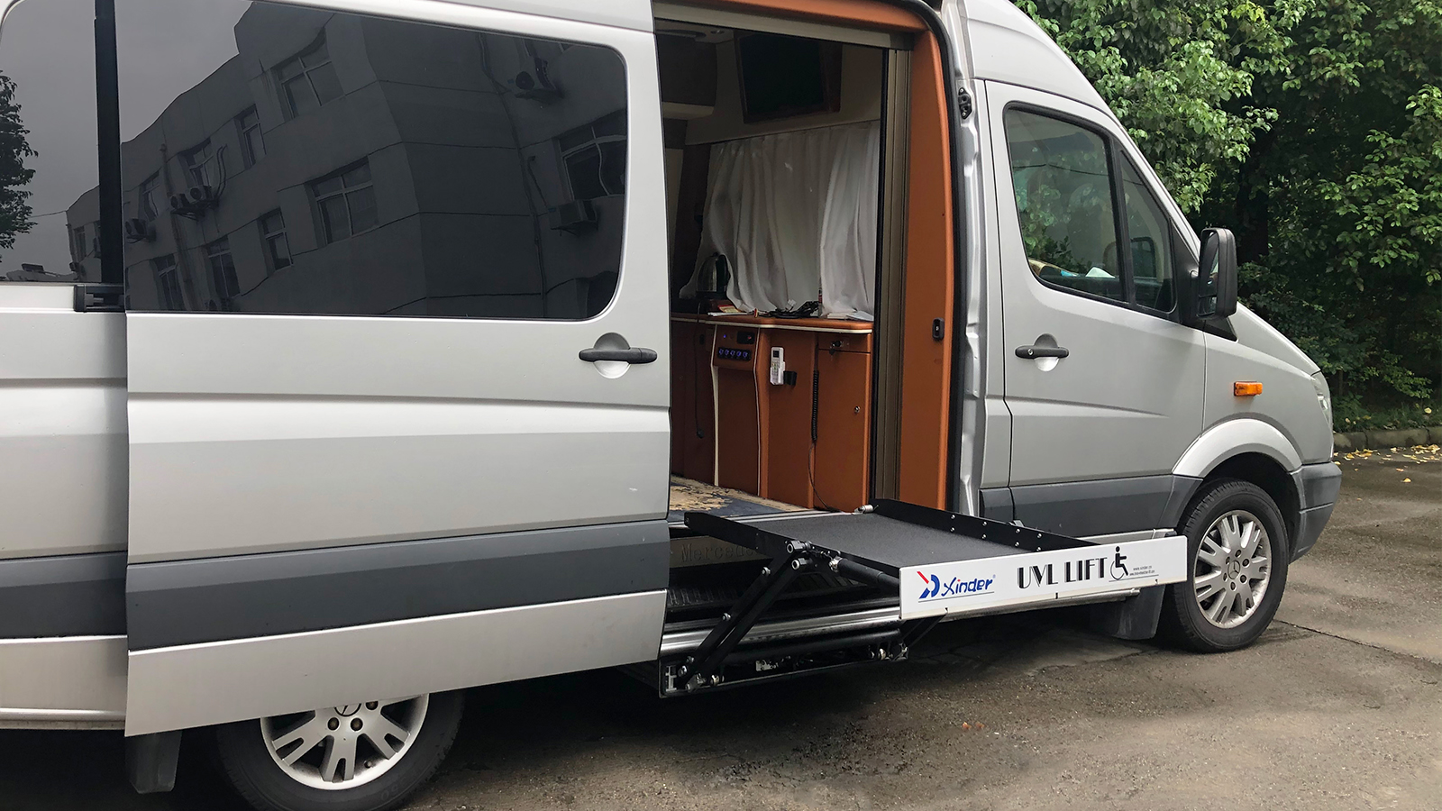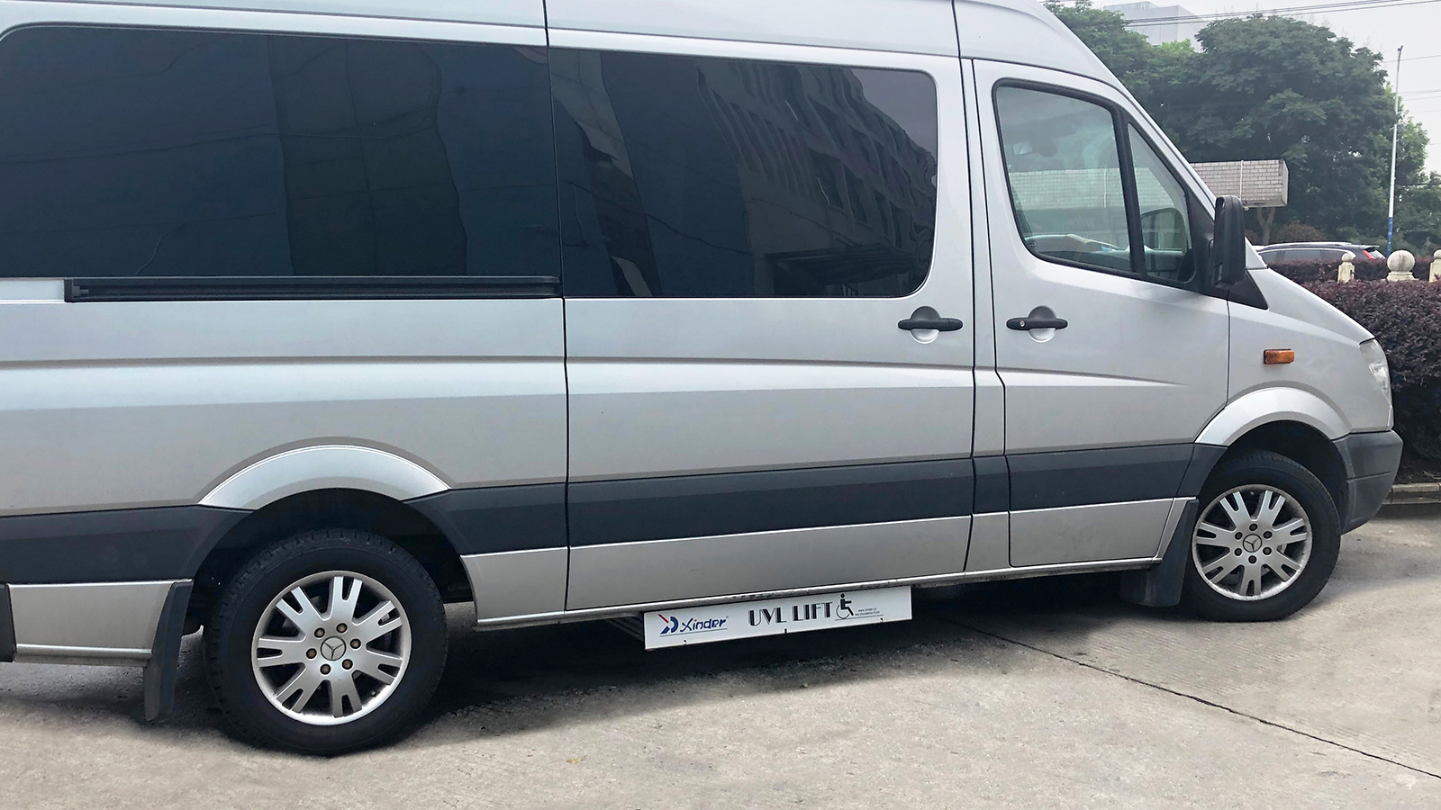 This lift is designed for van to help wheelchair occupant to get on van while seated on his wheelchair. It is installed under the chassis of van side door. It stays out of way and out of signt when not in use, so it can provide clear path and good visibility for passengers. The frame is super thin with thickness only 90mm. This lift can be operated by the wired remote control or your mobilephone, and it can be operated manually for emergency. Loading capacity is 300kg; Features Super thickness, only 90mm; Door interlock function; Inside safety locking device; Provides clear path and good visibility both for passengers and the dricer; Mechanical auotomatic roll stops; Warning sound during working; Powerful hydraulic system ensures smooth and stable movements; Anti-skid platform; Manual backup function; CE and EMARK certified; High-gloss polyester powder coat finish to prevent corrosion; Can be operated by the remote control or your mobile phone;