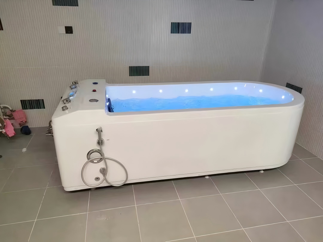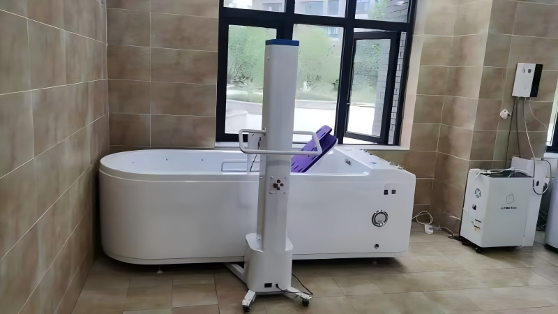The RH-V-3 Full-body Vortex Bubble Bath with Mobile Cart is specifically designed for rehabilitation centers, hospitals, and premium wellness institutions, catering to individuals with neuromuscular disorders, post-surgery recovery, and sub-health conditions. Featuring an integrated acrylic structure, it delivers 1000L constant-temperature vortex therapy, 120 bubble chambers, light therapy music, 30 smart prescription programs, dual disinfection (ozone + UV), and water-electricity separation with dual leakage protection. Paired with a 304 stainless steel EVA reclining cart with 150kg load capacity, 600mm electric lift, foldable armrests, and lithium battery power, the device is included in China's Rehabilitation Assistive Devices Catalog.