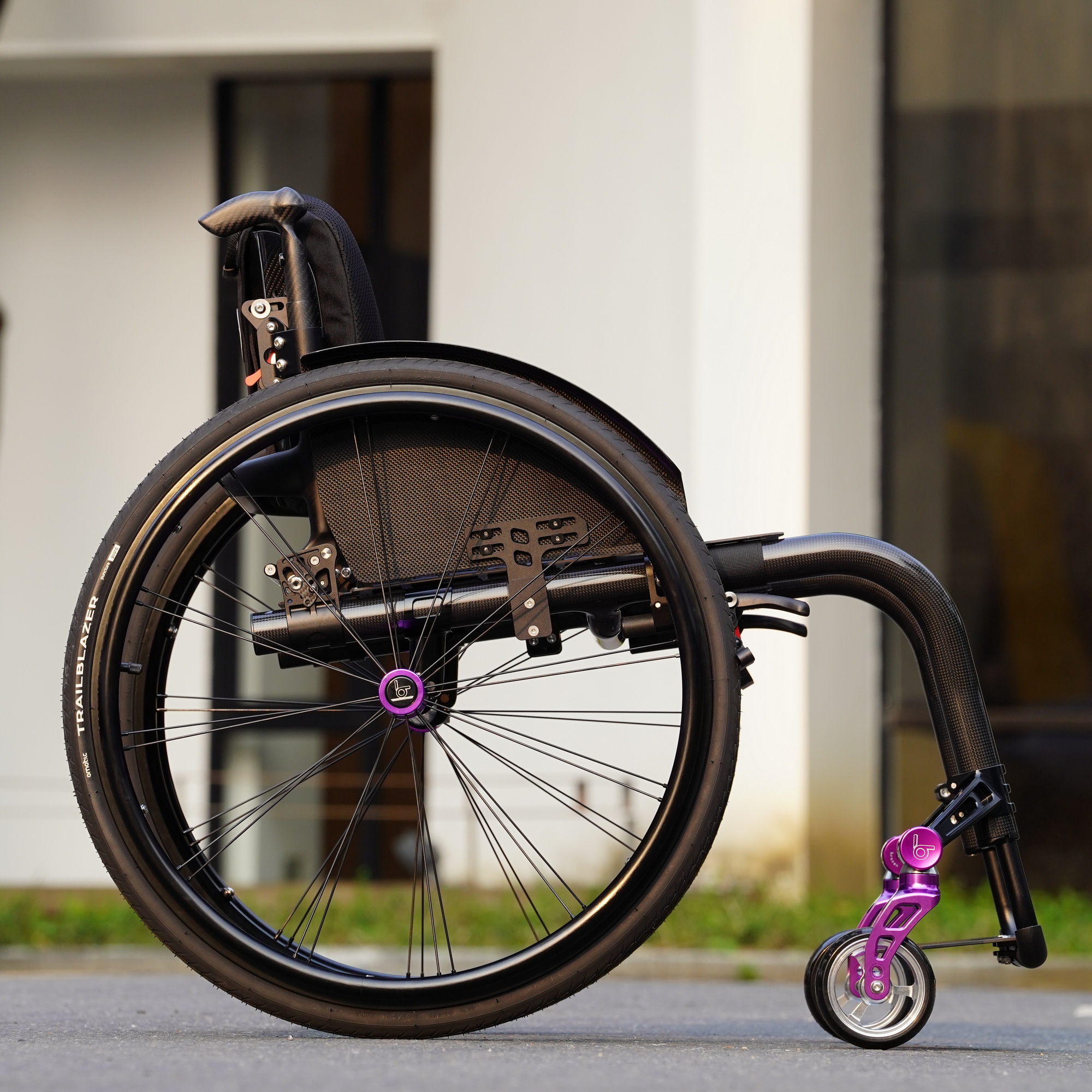 Each X1 wheelchair is customized by an experienced expert for a valued user. The main components of X1 are crafted from premium-grade composite carbon fiber, delivering exceptional lightweight performance with stability and durability. Optional upgrades include a carbon fiber back, suspension castor forks, high-performance wheels, and comfort grip pushi rims and push handles, enhancing overall comfort, aesthetics, and safety. The backrest folds to frame effortlessly, while the wheels features 12.7MM quick-release axle design for instant assembly. Starting at 9kg in total weight and 5kg for the frame, this chair delivers outstanding performance and durability.