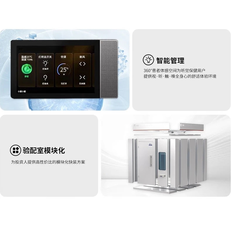 Model:P250 Noise insulation:outdoor ambient noise ≤55dB (A), indoor background noise ≤20dB (A) Environmental protection:Formaldehyde release ≤0.4mg/L,meeting《Indoor decorating and refurbishing materials—Limit of formaldehyde emission of wood-based panels and finishing products》 Reference standard:JJF 1191-2019 《Calibration Specification for Acoustic Performance of Audiometry Rooms》 GB 3096-2022 《Environmental quality standards for noise》 GB 50325-2020 《Standard for indoor environmental pollution control of civil building engineering》 Applications:ABR testing, OAE testing