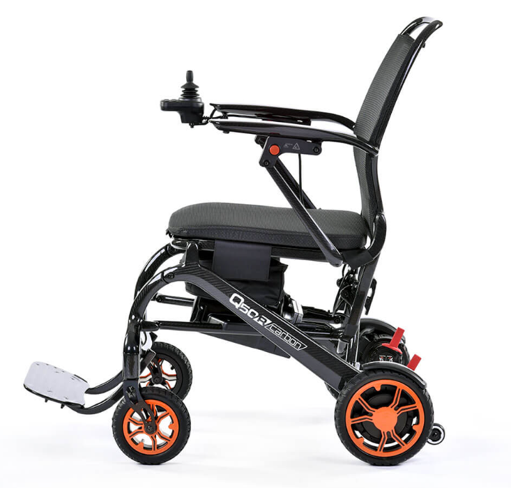 Travel lighter with QUICKIE's lightest carbon folding powerchair. Long-haul getaways. Family breaks. The daily commute. Whatever your destination, the Q50 R Carbon is your perfect travelling partner. Weighing a mere 14.5 kg (without batteries) and fabricated from premium carbon fibre, take a load off your mind (and your arms) knowing that this is an effortless powerchair to lift. Foldable in seconds, it stores snugly away in the tightest of places too (and all without removing the battery). Ready to go out? The Q50 R Carbon packs the robust, reliable QUICKIE performance to get you from A-B (or even A-Z, thanks to its extended 24 km range). And with 5 eye-catching accent colours, you'll bring a touch of style to wherever you go too.