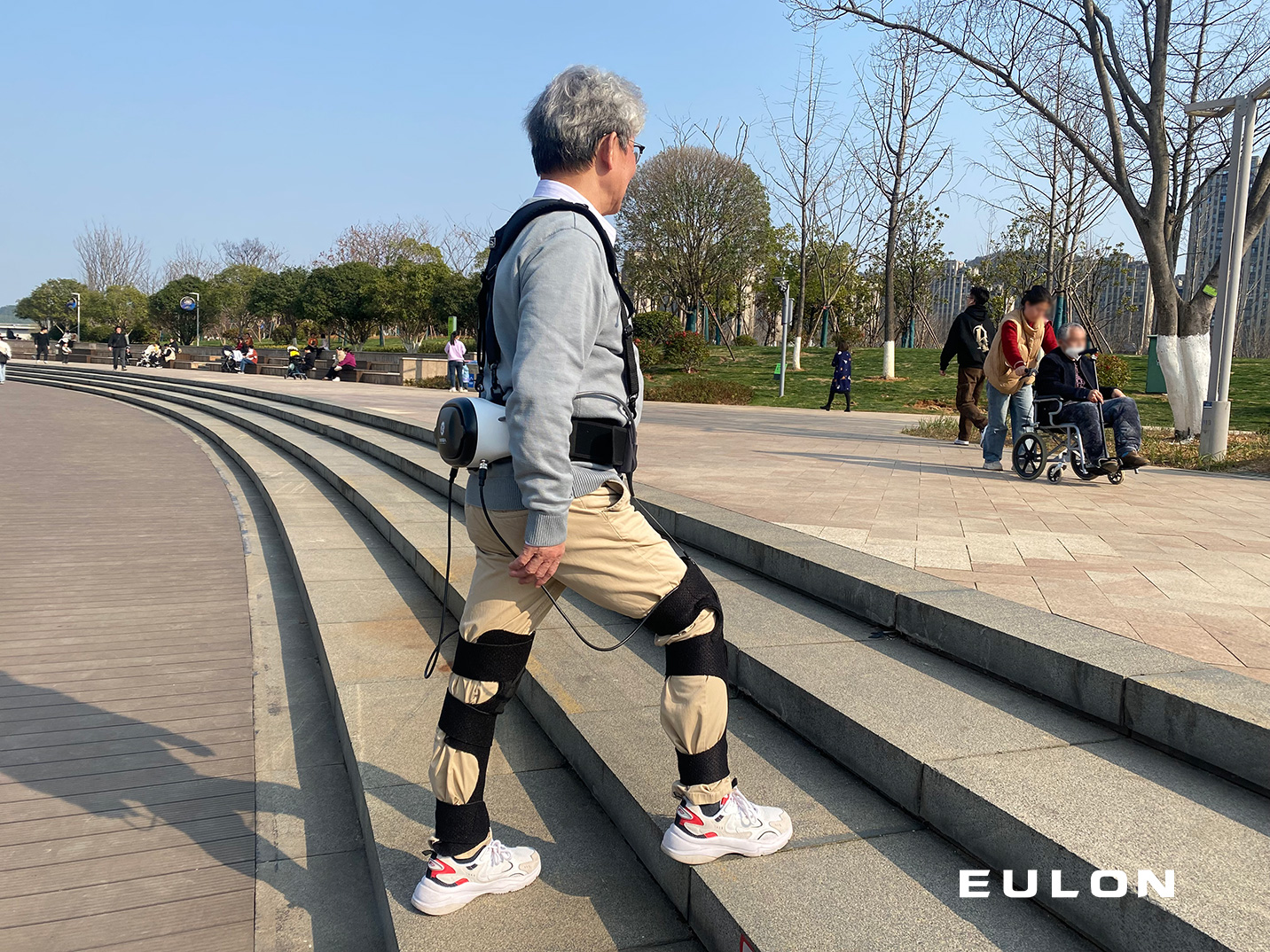 The EULON exosuit, equipped with Bowden wire drive, is designed to assist wearers in various movements, such as walking and uphill climbing. It is particularly beneficial for individuals with weakened lower limbs. The exosuit integrates advanced technologies, including bionics and in-depth human-machine interaction. Moreover, it improves the comfort of human wearing by iterative learning and prediction technology.