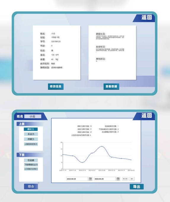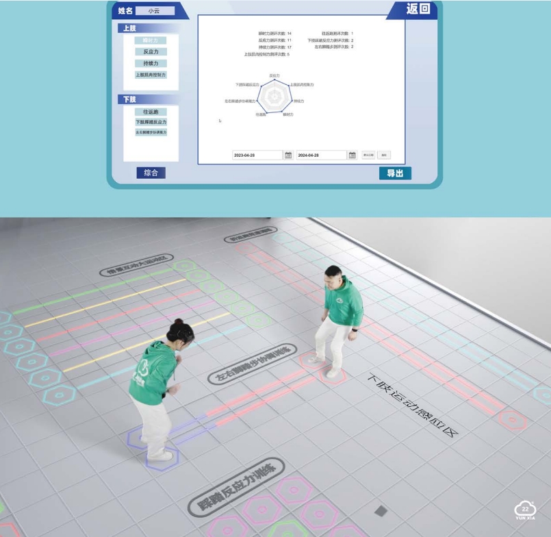 The Motor Rehabilitation Assessment and Training System employs core technologies including an adaptive learning engine and data analytics engine, combined with touch-sensitive sensors and flexible light-transmitting materials, to create a scientific, safe, and realistic training environment. This system provides comprehensive assessment and targeted training for children's motor abilities.