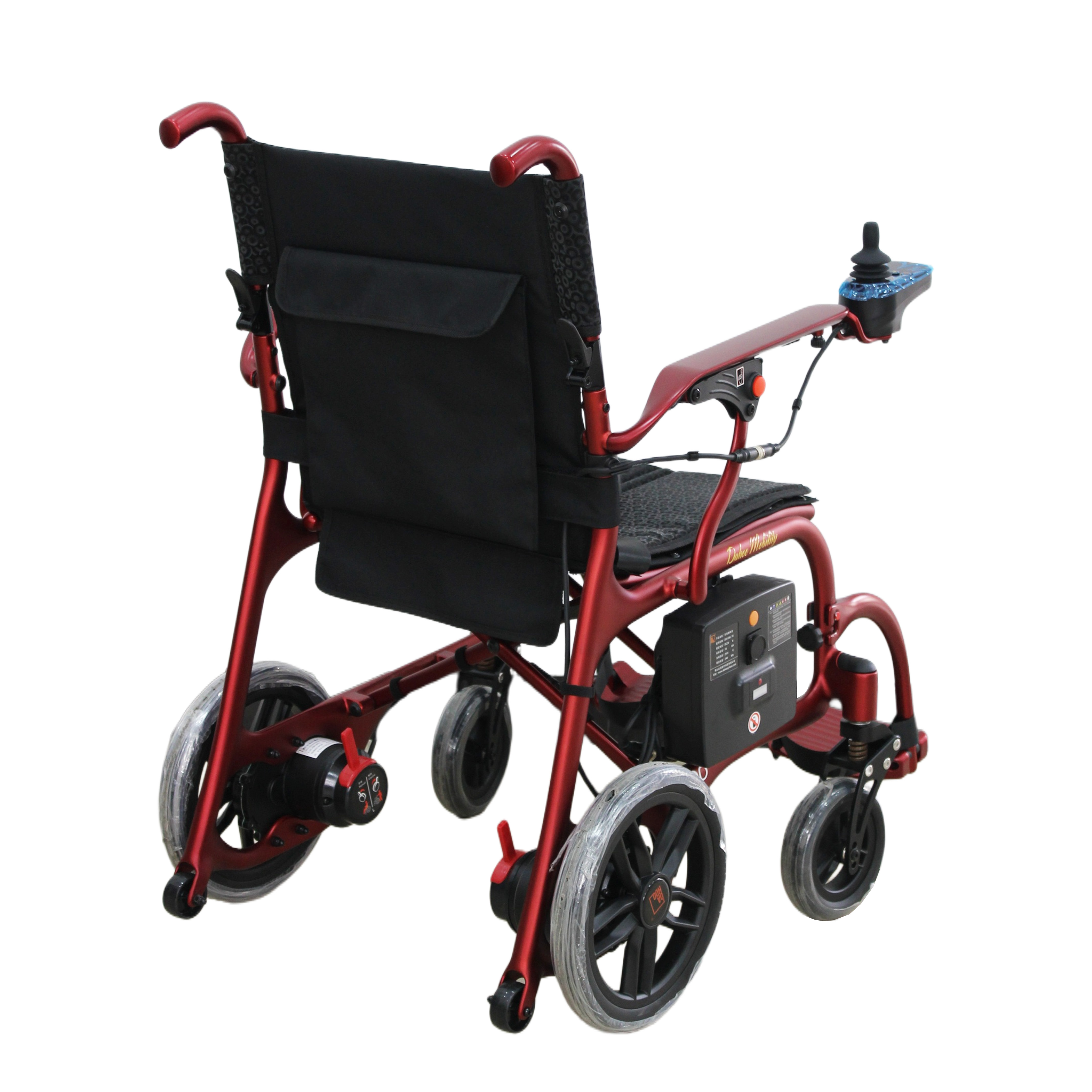 The entire unit is made of high-strength carbon fiber with a 2mm wall thickness, formed in one piece, making it lightweight and easy to carry. The carbon fiber's natural texture is paired with a glossy paint finish, providing corrosion and oxidation resistance. The foldable frame with an I-shaped cross structure, combined with the ergonomically designed seat cushion, ensures comfort even during long periods of sitting. The rear-flipping armrests and quick-release footrest enhance convenience. The seat and back cushions are made of high-strength nylon fabric plus mesh cloth, with built-in canvas reinforcement, achieving a tensile strength of 5000N, offering softness and breathability. Both front and rear wheels are equipped with magnesium alloy hubs, PU tires, and shock absorption. The 150W brushless motor with electromagnetic braking delivers strong power while being energy-efficient. It supports one-key switching between electric and manual modes, comes with a speed display and low-battery braking function, ensuring safety and convenience.