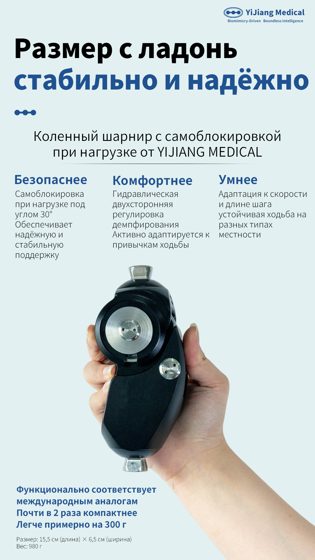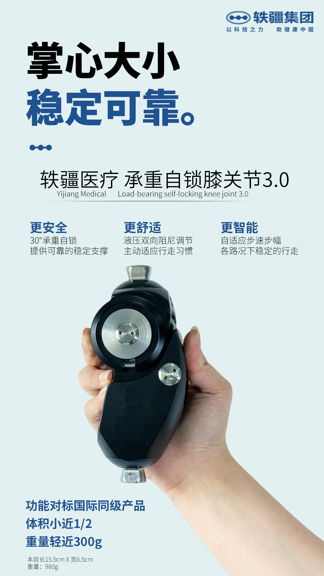 Weight-Bearing Self-Locking Knee joint type: Yijiang A3 1. Hydraulic technology, 30 degree load-bearing self-locking, two-way damping adjustment. 2. Gait following: This product can automatically adjust the damping with the change of pace and stride length, and can adapt to the speed of walking. 3. Knees and ankles linkage, alternately going up and down stairs, slopes, etc.