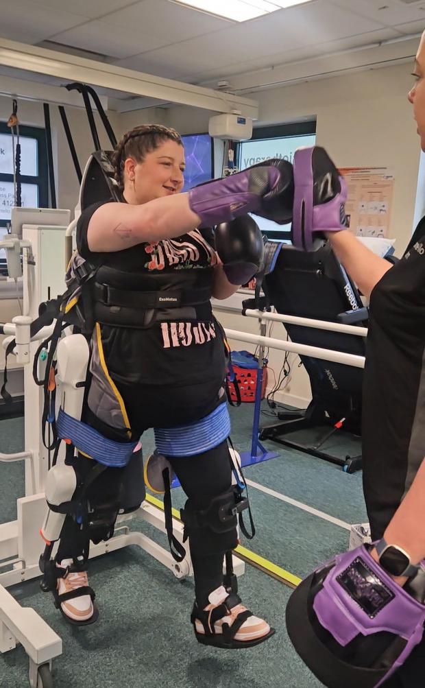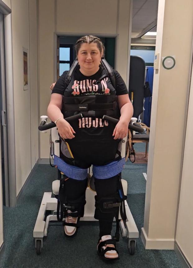 Sophie Shuttleworth, 32, from Newport, a graphic designer and beautician, has been in a wheelchair since being paralysed from the chest down by viral meningitis in July 2022, and never thought she would be able to experience walking again.