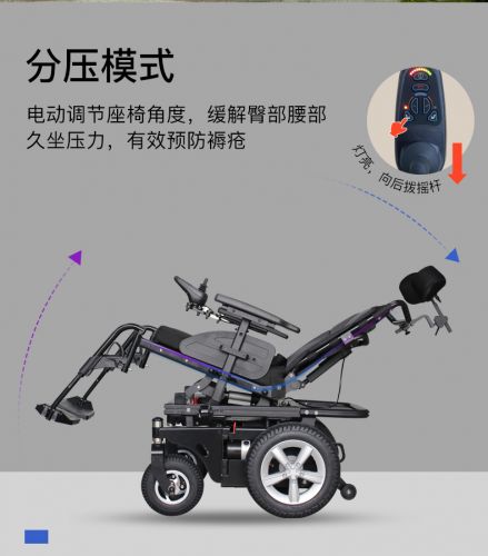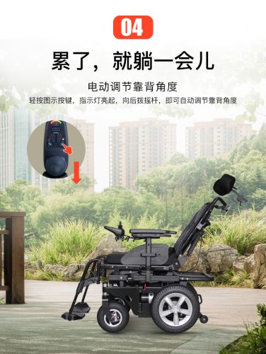 全功能減壓越野輪椅 靠背多角度調節(jié),車身可后仰,舒適減壓,有限預防褥瘡 LED前燈,酷炫后尾燈 標配人機工程學頭枕,多處可調節(jié) 前后越野充氣輪胎,舒適減震 后置置物架,承重50公斤,可放制氧機等設備