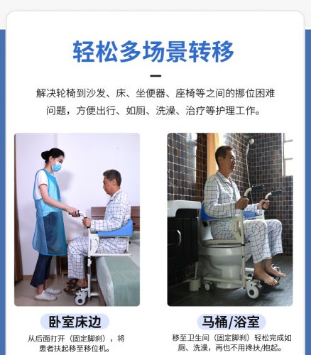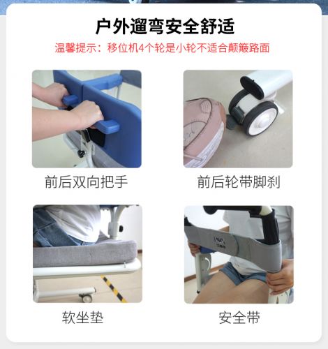 多功能移位機(jī)——有效解決了行動(dòng)不便人士在沙發(fā)、床、坐便器、座椅等之間相互移位的痛點(diǎn),以提高行動(dòng)不便人士的生活質(zhì)量。護(hù)理人員通過(guò)使用移位機(jī)可以大大減輕了工作強(qiáng)度,提高了護(hù)理效率,項(xiàng)目產(chǎn)品可以解放勞動(dòng)力或者減輕護(hù)理人員的負(fù)擔(dān)。