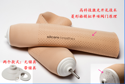 "擁有專利技術(shù)的排汗硅膠套,革命性地解決了用戶使用假肢的出汗帶來的體驗(yàn)問題; 小腿截肢使用 ; 矩陣式分布的激光精密加工小孔,可主動(dòng)排出空氣和水分 ; 無縫雙向拉伸,外形美觀的同時(shí)倍感舒適 ; 基于柔性技術(shù)的表面處理,可改善皮膚接觸剪應(yīng)力 ; 單向氣閥的使用,實(shí)現(xiàn)與殘肢的完美貼合與運(yùn)動(dòng)跟隨性;"