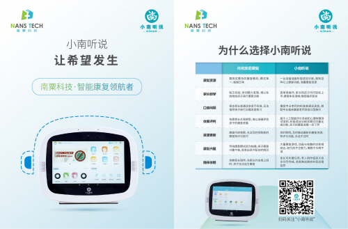 小南聽(tīng)說(shuō)-聽(tīng)力語(yǔ)言智能康復(fù)助手,是首款覆蓋家庭場(chǎng)景和機(jī)構(gòu)個(gè)訓(xùn)場(chǎng)景,面向患有聽(tīng)力、言語(yǔ)語(yǔ)言障礙兒童及青少年的智能化康復(fù)訓(xùn)練設(shè)備。它具有功能強(qiáng)大、操作簡(jiǎn)單、趣味性強(qiáng)、內(nèi)容豐富等特點(diǎn),是家長(zhǎng)與康復(fù)老師的得力助手。該產(chǎn)品經(jīng)過(guò)國(guó)內(nèi)多家專業(yè)康復(fù)機(jī)構(gòu)驗(yàn)證,已成為很多老師的日常教學(xué)神器,還可作為早教機(jī)與智能學(xué)習(xí)機(jī)實(shí)現(xiàn)一機(jī)多用,滿足家長(zhǎng)全方位的需求。該產(chǎn)品已于今年7月上市,現(xiàn)誠(chéng)邀各地經(jīng)銷商垂詢合作。