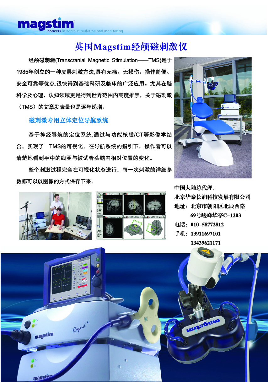 產(chǎn)品名稱:重復(fù)脈沖經(jīng)顱磁刺激器(rTMS) 規(guī)格型號(hào):Rapid² 特點(diǎn): Rapid2為第二代重復(fù)經(jīng)顱磁刺激,代表了經(jīng)顱磁刺激技術(shù)的高水準(zhǔn),目前國際市場占有率名列前茅。該系列產(chǎn)品可連續(xù)輸出脈沖磁刺激,刺激頻率可調(diào),可從0-50Hz或從0至100Hz。刺激強(qiáng)度、刺激間隔均可調(diào)整。豐富的刺激模式:單刺激、連續(xù)刺激、爆破刺激及各種組合刺激模式。