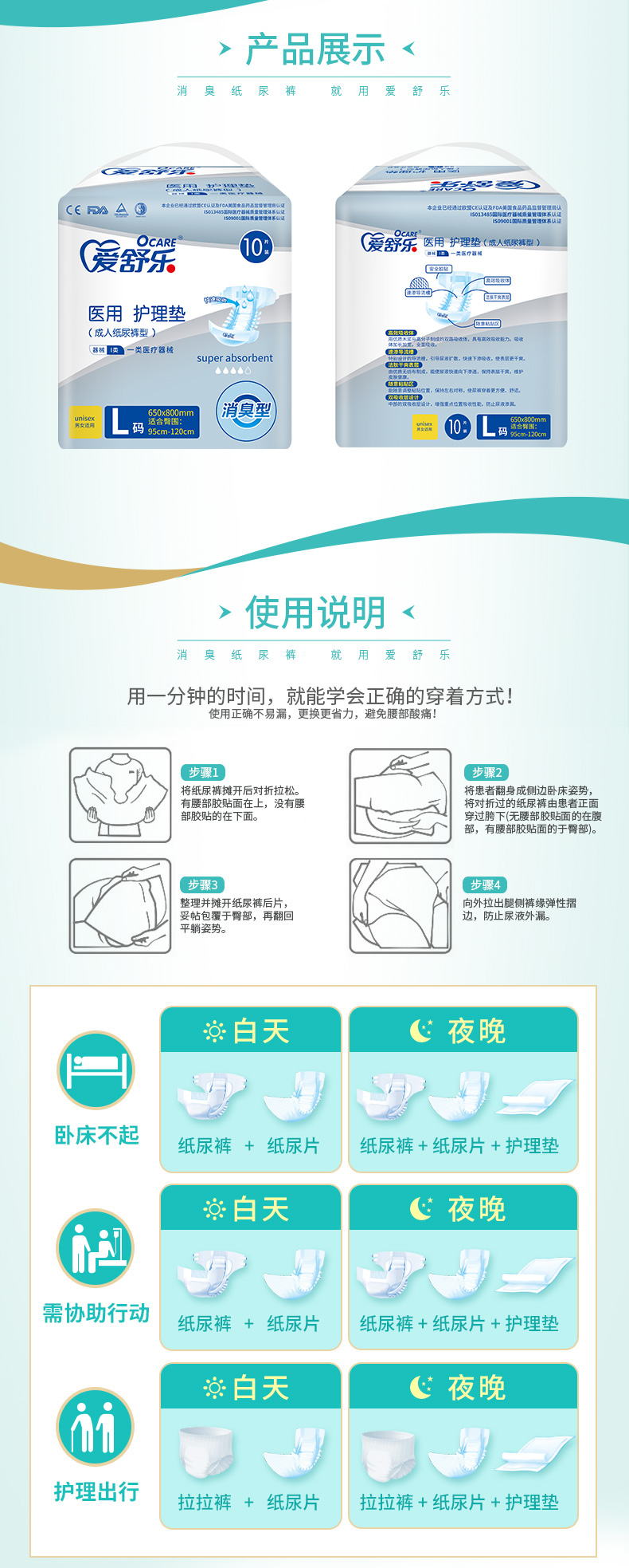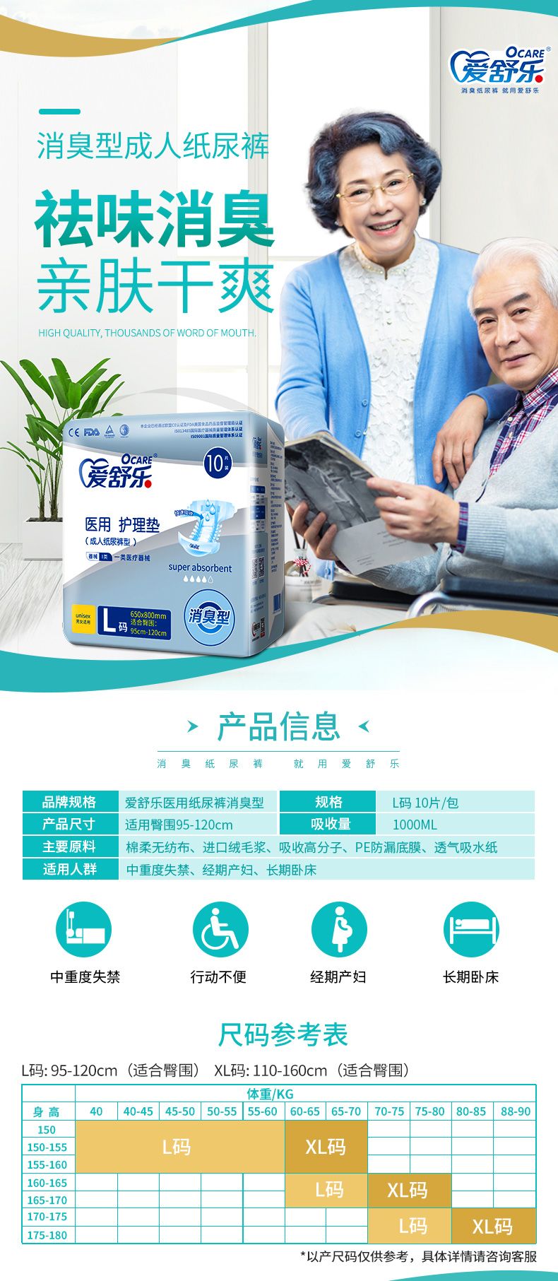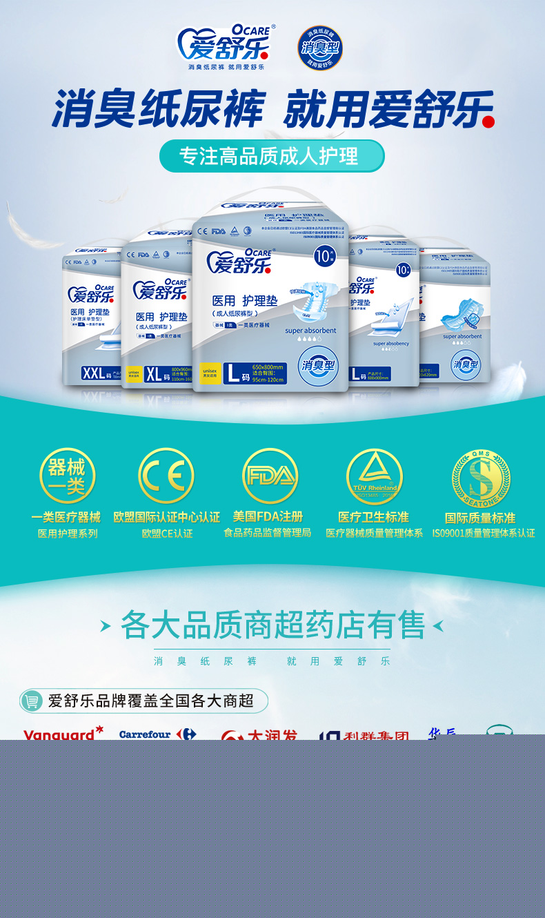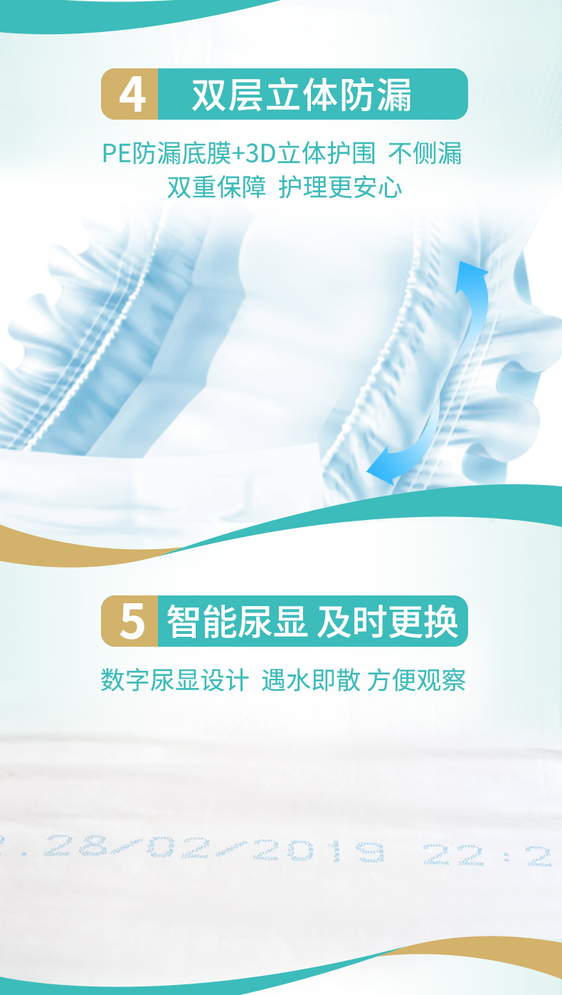 獨(dú)創(chuàng)“活護(hù)”消臭技術(shù),根除異味,舒適新凈界; 加長(zhǎng)加寬吸收面+倍效吸收高分子,大吸量告別高頻更換 絲柔無紡布,漏斗式導(dǎo)流層,時(shí)刻干爽不反滲 立體護(hù)圍,安心防漏,翻身平躺從無壓力