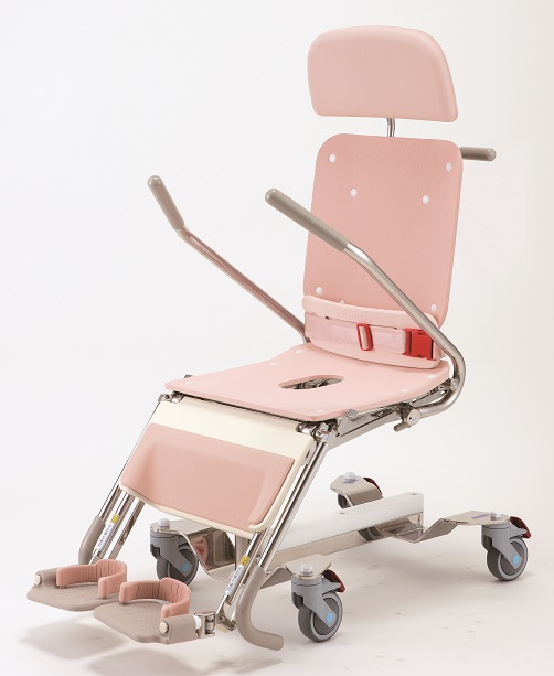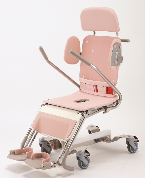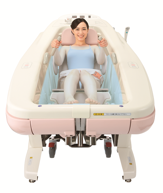 采用護理人員和洗浴者面對面的方式,能夠確認(rèn)洗浴者全身的狀況使洗浴服務(wù)更加安全。專用輪椅為一體結(jié)構(gòu),連接浴缸時聲音小,震動輕,且能夠與浴缸流暢連接。操作部分集中在隨手就能夠到的位置。“洗浴時間”“水溫”等一目了然??墒箤S幂喴纬势教蔂顟B(tài), 即便是一個護理人員也可為洗浴者 進(jìn)行臀部清洗服務(wù)。適用于半失能老人。
