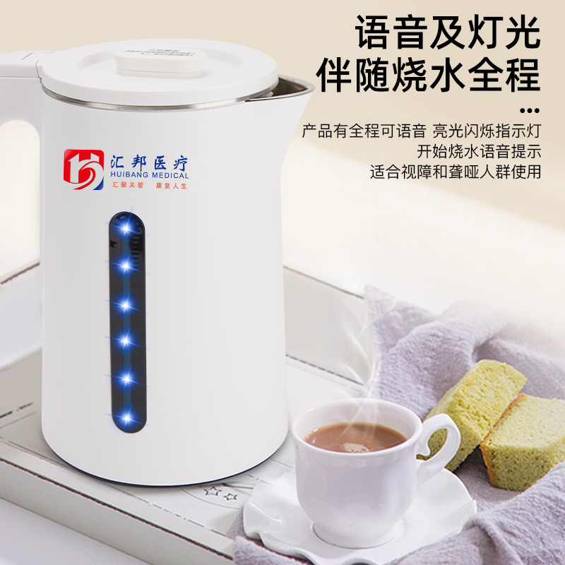 產(chǎn)品由壺身主機和底盤組成;額定功率:不低于1500W 電壓220V 額定頻率50-60HZ 容量:2L;產(chǎn)品材質(zhì)內(nèi)膽由食品級不銹鋼一體成型,蓋子由304食品級不銹鋼,外殼全新PP料無毒 無異味,質(zhì)感好表面光滑;產(chǎn)品有全程可語音 亮光閃爍指示燈,開始燒水語音提示;產(chǎn)品獨立開關(guān)上面有開關(guān),簡單易操作 一鍵操控;水壺主體采用雙層防燙設(shè)計,適合視障人士使用,使用更安全;