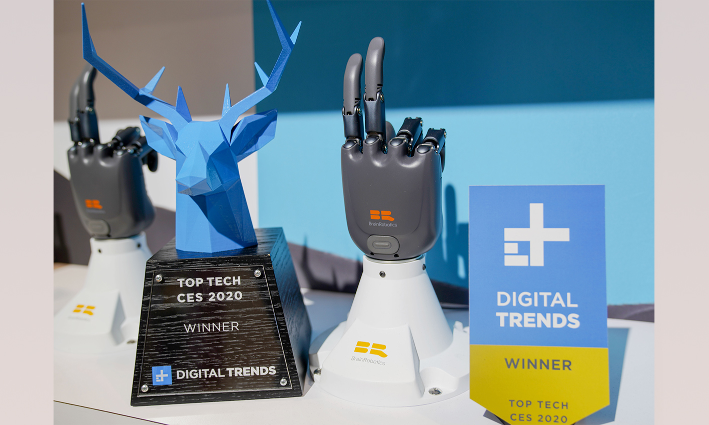 BrainRobotics智能仿生手,是一款腦機(jī)接口技術(shù)與人工智能算法高度整合的智能產(chǎn)品。這款仿生手可通過(guò)檢測(cè)佩戴者的神經(jīng)電和肌肉電信號(hào),識(shí)別佩戴者的運(yùn)動(dòng)意圖,并將運(yùn)動(dòng)意圖轉(zhuǎn)化為智能仿生手的動(dòng)作,從而做到靈巧智能,手隨心動(dòng)。