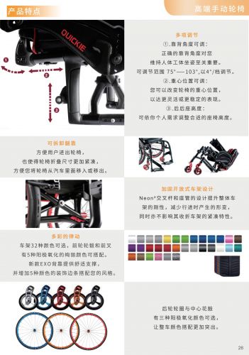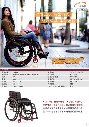 Neon2 是一臺將個性化、多功能可調(diào)節(jié)、便攜性融入于現(xiàn)代化設(shè)計的開放式折疊輪椅,車架的交叉桿和座椅管的加固設(shè)計給用戶提供了一個可與剛性車架輪椅媲美的騎乘性能。