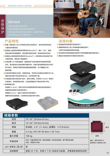 JAY Union是一種多用途的,舒適的,皮膚保護(hù)和擺位輪椅座墊,由液態(tài)凝膠和泡棉分層組合,配置防水內(nèi)襯布套,清洗方便。