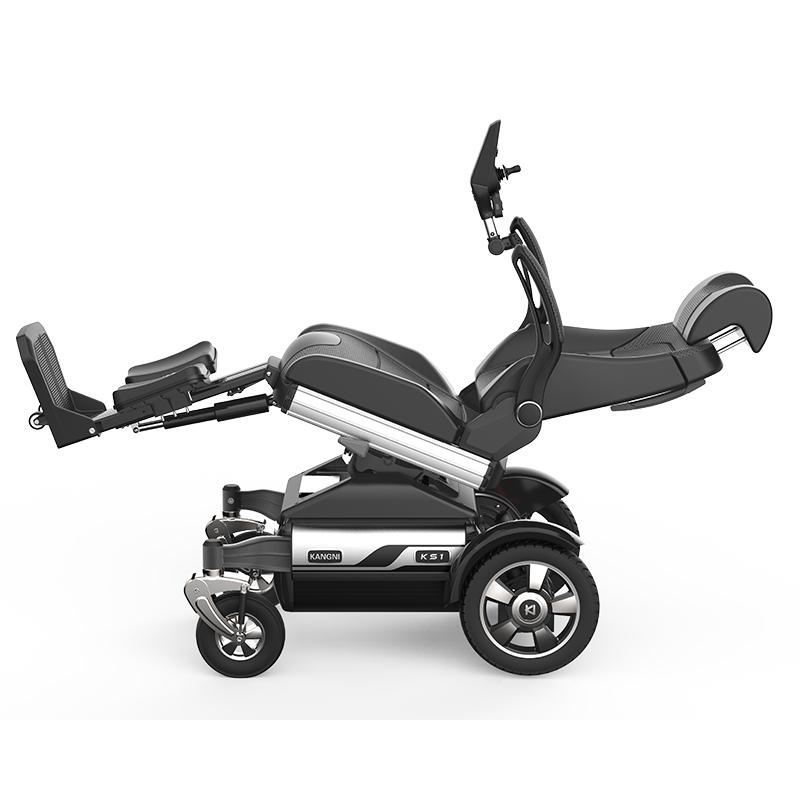 KS系列智能康復訓練型電動輪椅,填補了國內(nèi)高端電動輪椅車的研發(fā)空白,輪椅通過腳踏、座椅面、靠背角度電動調(diào)節(jié),調(diào)整舒適度,滿足不同坐姿的需求。 康尼KS1系列智能電動輪椅具有12項核心功能:腳踏、靠背、座椅調(diào)節(jié)、自平衡、電動升降、電動逍遙、手動/電動旋轉(zhuǎn)、一鍵助站助坐、越障、遠程求救、云智能、無線遙控等功能。