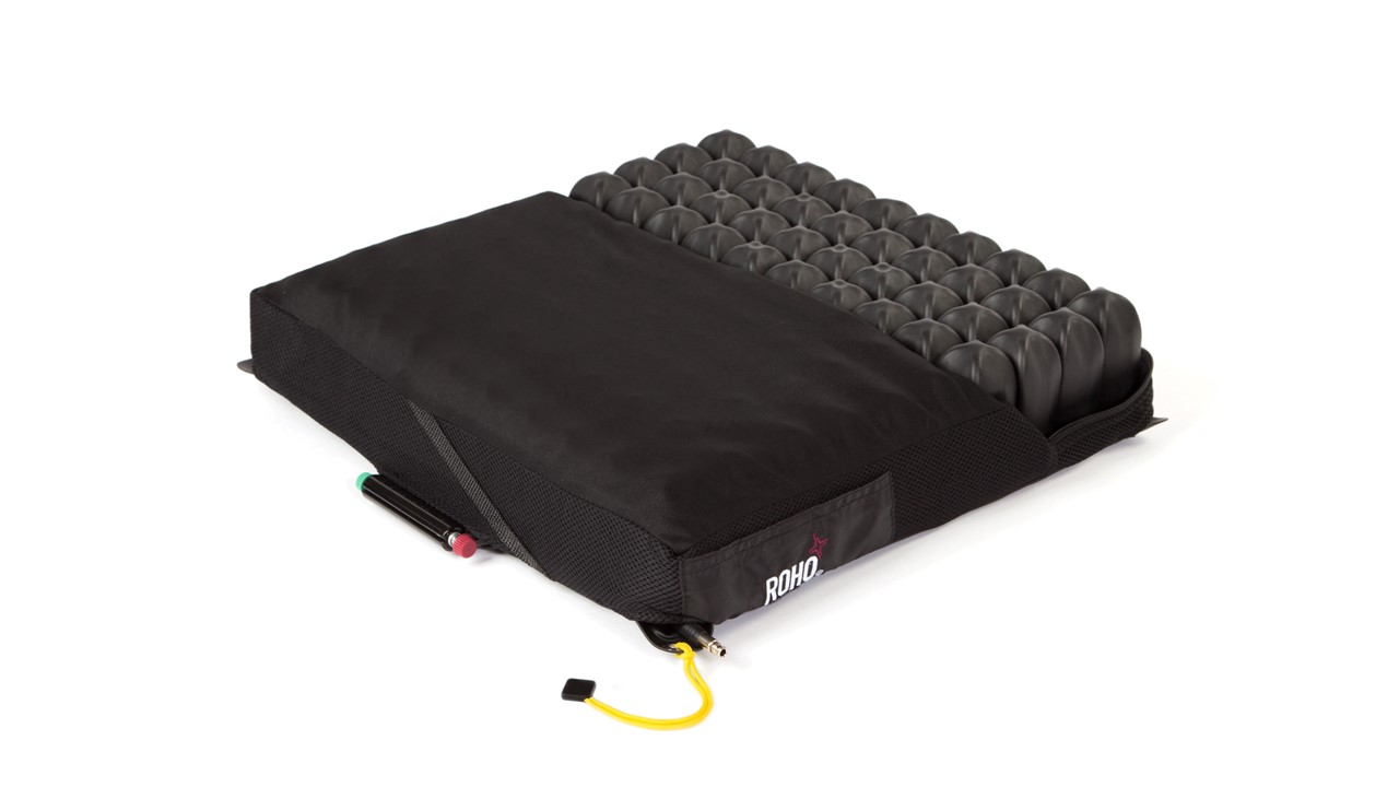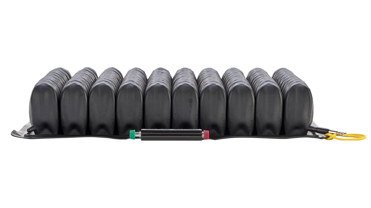 ROHO應(yīng)用干式浮力技術(shù),使您沉入,合您身形,隨您而動,與您協(xié)作。有效保護(hù)皮膚及軟組織,提升用戶坐姿穩(wěn)定。 ROHO四邊可調(diào)型坐墊配有ISOFLO專利記憶控制閥 當(dāng)閥門打開,即綠色推入時,所有氣囊相互連通,此時可以漸進(jìn)調(diào)整坐姿,或充氣或放氣 當(dāng)坐姿調(diào)整完畢,關(guān)閉閥門,即將紅色推入時,坐墊分為四個獨立分區(qū),分區(qū)內(nèi)氣囊聯(lián)通,而四個分區(qū)之間互相獨立,以提升用戶在坐姿狀態(tài)下的穩(wěn)定性