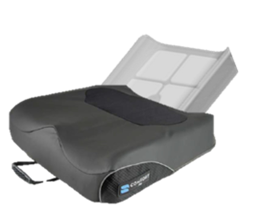 腿部凹陷區(qū),幫助坐姿正直; 兩側泡棉前窄后寬,以穩(wěn)定大轉子; 雙層泡棉,基底泡棉提供廓形支撐,上層記憶棉提供舒適及皮膚保護; 坐墊底部采用防滑材質,并附有魔術貼,使坐墊固定于座椅上; 坐墊套四周為穩(wěn)定區(qū),骶尾部具有低剪切力區(qū)域 坐墊材質:聚丙烯泡棉+凝膠