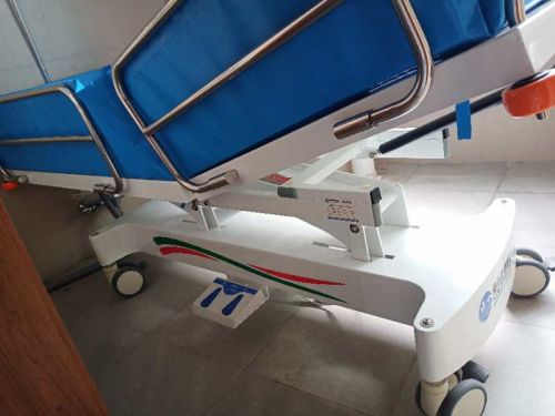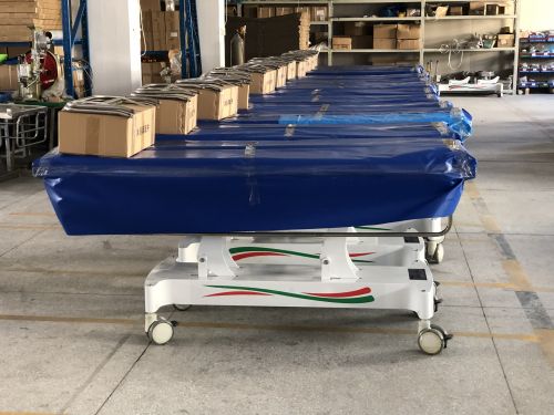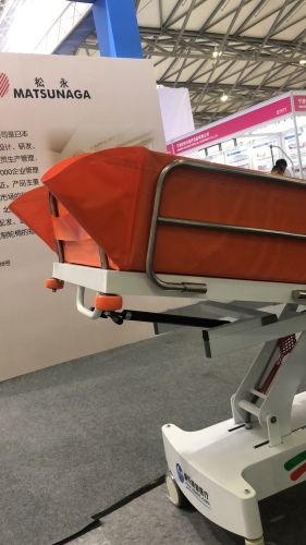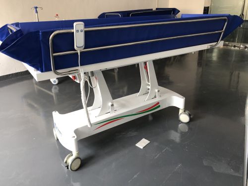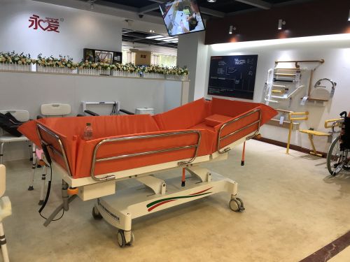 1.將沐浴推床推到與病床并排平行后(間隙應(yīng)小于5CM)將沐浴推床塔升降至與病床同一高度,打開(kāi)與病床靠靠攏一側(cè)護(hù)欄,將浴槽護(hù)欄部部份平鋪于病床上,老人側(cè)身,將過(guò)床器放到老人身后準(zhǔn)備過(guò)床。 2.鎖住沐浴推床四輪剎車防止移動(dòng),將老人利用過(guò)床器移到與沐浴推床平行。 3.讓老人兩手左手交疊于胸前,雙腳交疊,護(hù)理員一手扶住老人肩部,一手扶住臀部輕推老人完成過(guò)床。 4.過(guò)床完畢,松開(kāi)四輪剎車,護(hù)欄調(diào)至立起