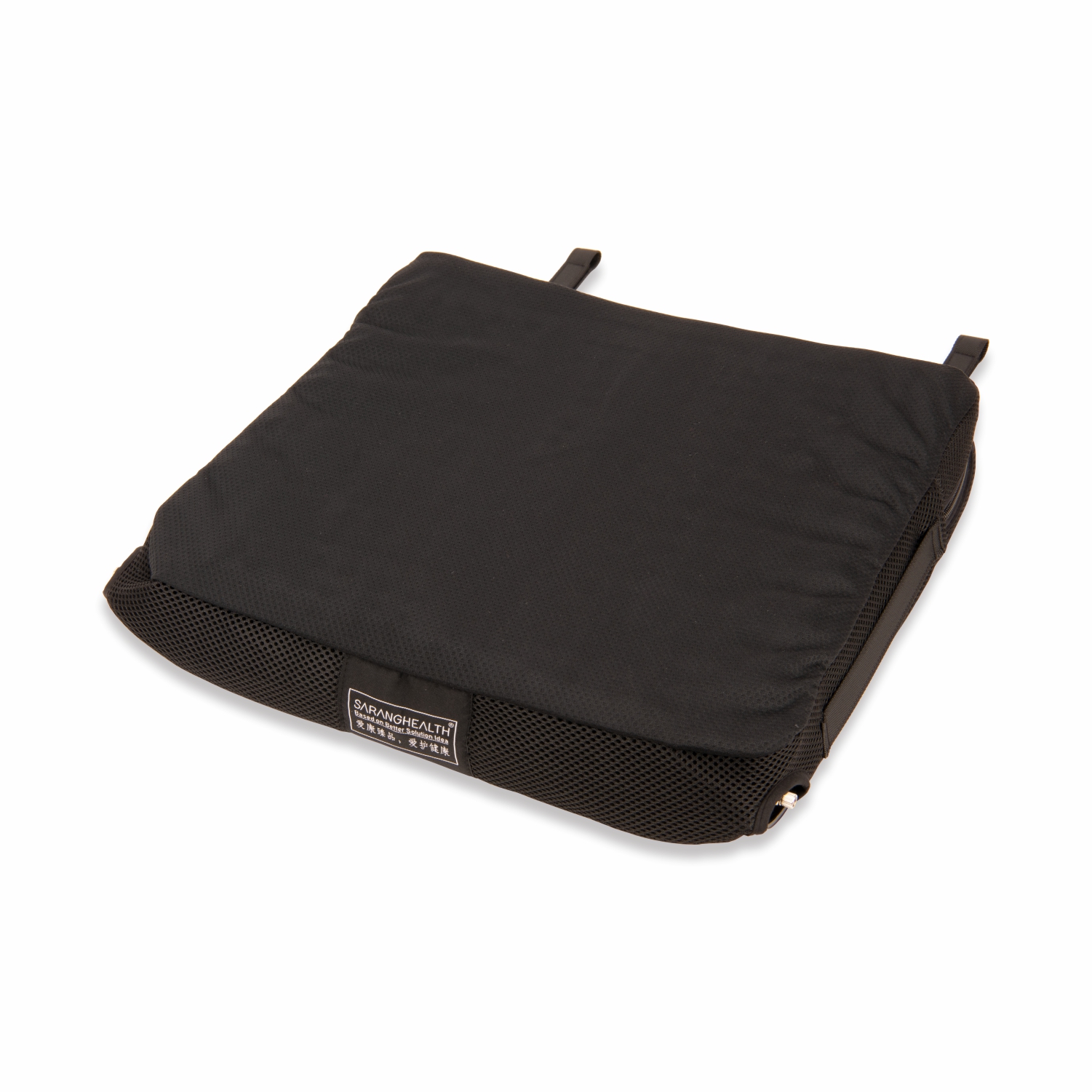 充氣坐墊采用環(huán)保PVC氣囊,內(nèi)置獨(dú)立氣囊,氣囊相互連通,易充氣和調(diào)節(jié),依據(jù)空氣流通卸壓原理,能有效預(yù)防壓瘡。左、右獨(dú)立氣室的雙氣嘴設(shè)置,不同的截癱患者左右臀部肌肉收縮程度的高低不同,可通過(guò)左、右氣嘴調(diào)節(jié)左、右獨(dú)立氣室內(nèi)的空氣量,使截癱患者得到最佳的舒適度及減壓平衡效果。坐墊套面層采用透氣滌綸面料,底部PVC防滑革,拉鏈設(shè)置易于清洗。多種尺寸、高度,適合不同輪椅使用者的需求。