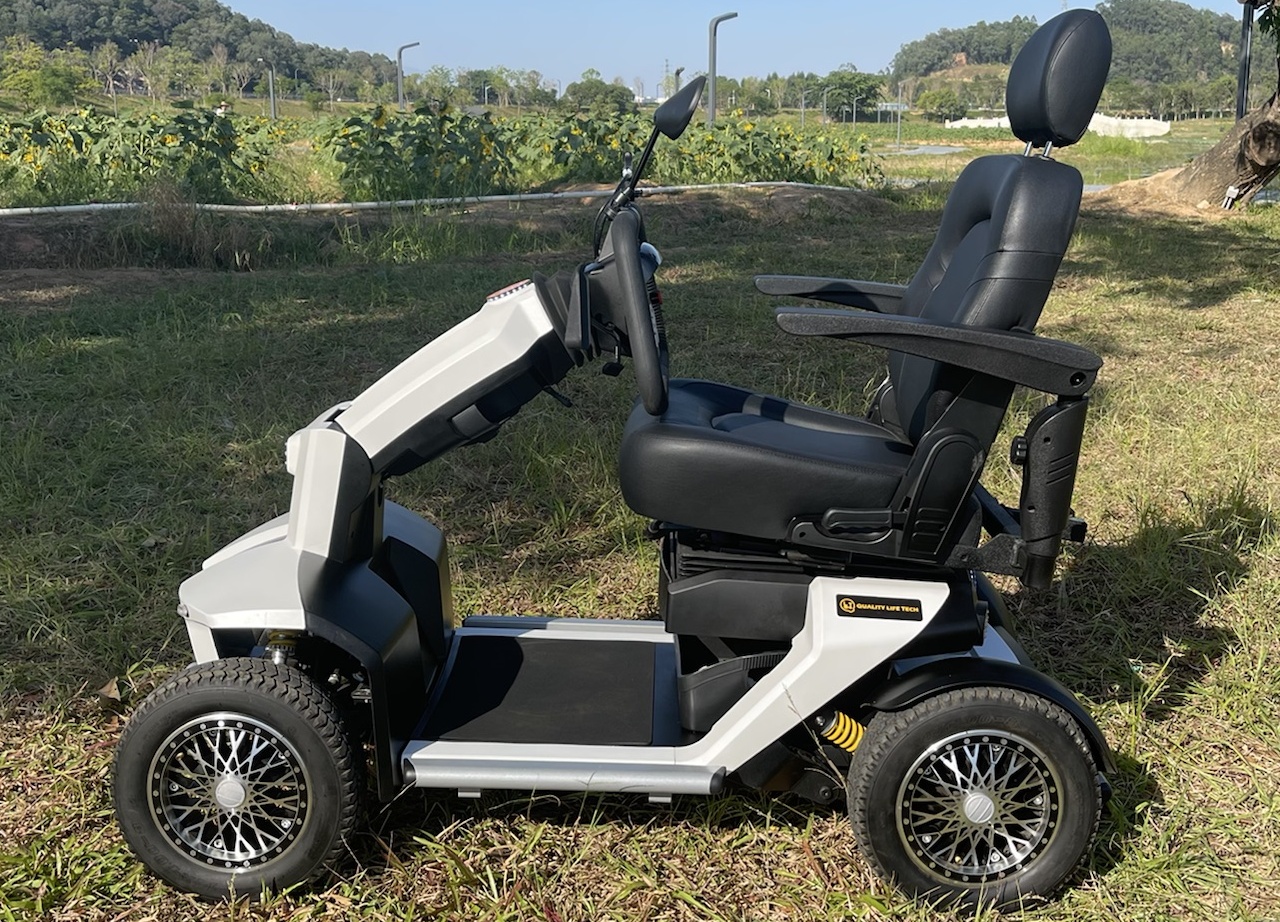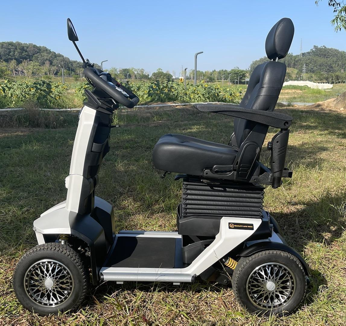 QS1231/QS1245電動代步車是全樂電動科技根據(jù)國內(nèi)外市場需求和產(chǎn)業(yè)潛在發(fā)展趨勢,結(jié)合市場、研發(fā)部門對行動輔具行業(yè)及老人/殘疾人出行需求的理解,全新設(shè)計的一系列戶外用全地形電動代步車。人體工學(xué)設(shè)計的T把操作、方向盤調(diào)節(jié)及座椅調(diào)節(jié)模塊和整套豪華日晚間照明燈具,支持長時間、全地形、日間晚間戶外使用。簡潔時尚的外型設(shè)計,現(xiàn)代數(shù)碼感外觀,打破傳統(tǒng)電動代步車造型局限,給消費者帶來耳目一新的使用體驗。