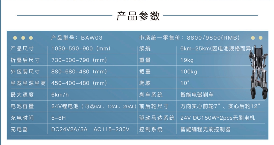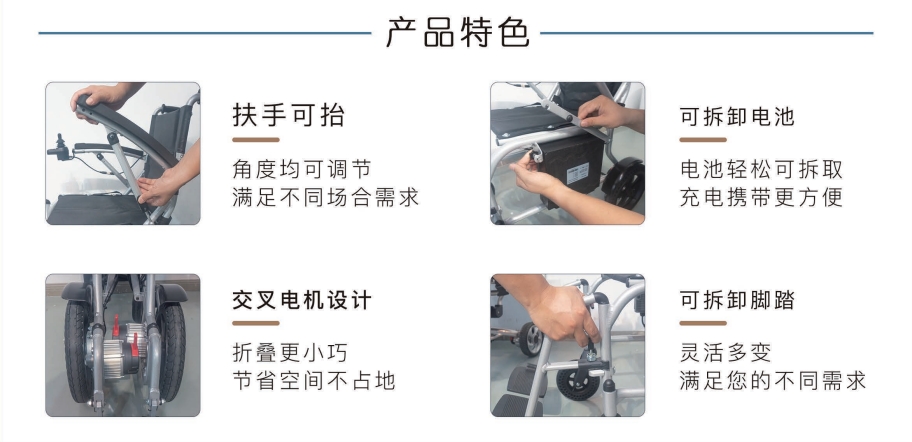 1、鋁合金車身,凈重17公斤 2、快拆式腳踏,方便上下車、移位 3、收合簡單,免彎腰,可放后備箱 4、專利防后傾輪,二段式設(shè)計,有效防止傾倒、后翻,安全加倍