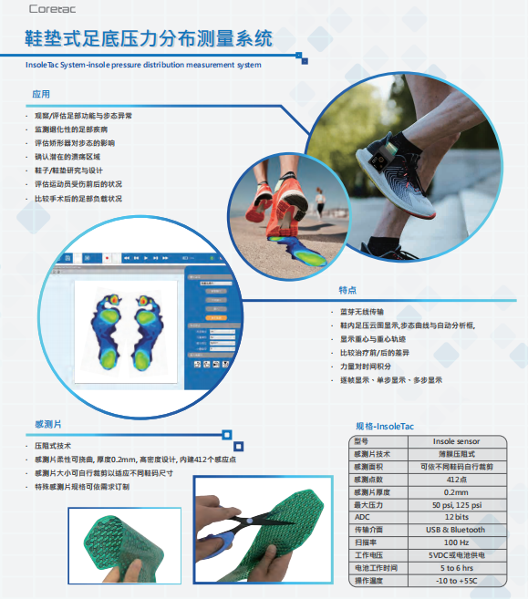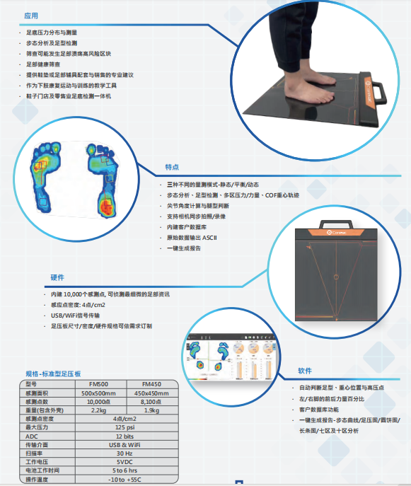 麥思科技有限公司通過積累了20多年的行業(yè)經(jīng)驗而開發(fā)的壓力分布測量產(chǎn)品,包含便攜式足壓板,鞋墊式足壓分析系統(tǒng)、步道式足壓分析系統(tǒng)以及人體壓力分布測量系統(tǒng),旨在面向康復(fù)醫(yī)療、康復(fù)輔具制作、體育運動,科研等領(lǐng)域的用戶,為其提供高性能的壓力分析工具。使用場景包括并不局限于:康復(fù)治療前后的效果對比,為矯形鞋墊定制提數(shù)據(jù)依據(jù),運動員的科學(xué)訓(xùn)練輔助,運動生物力學(xué)的數(shù)據(jù)采集等等。