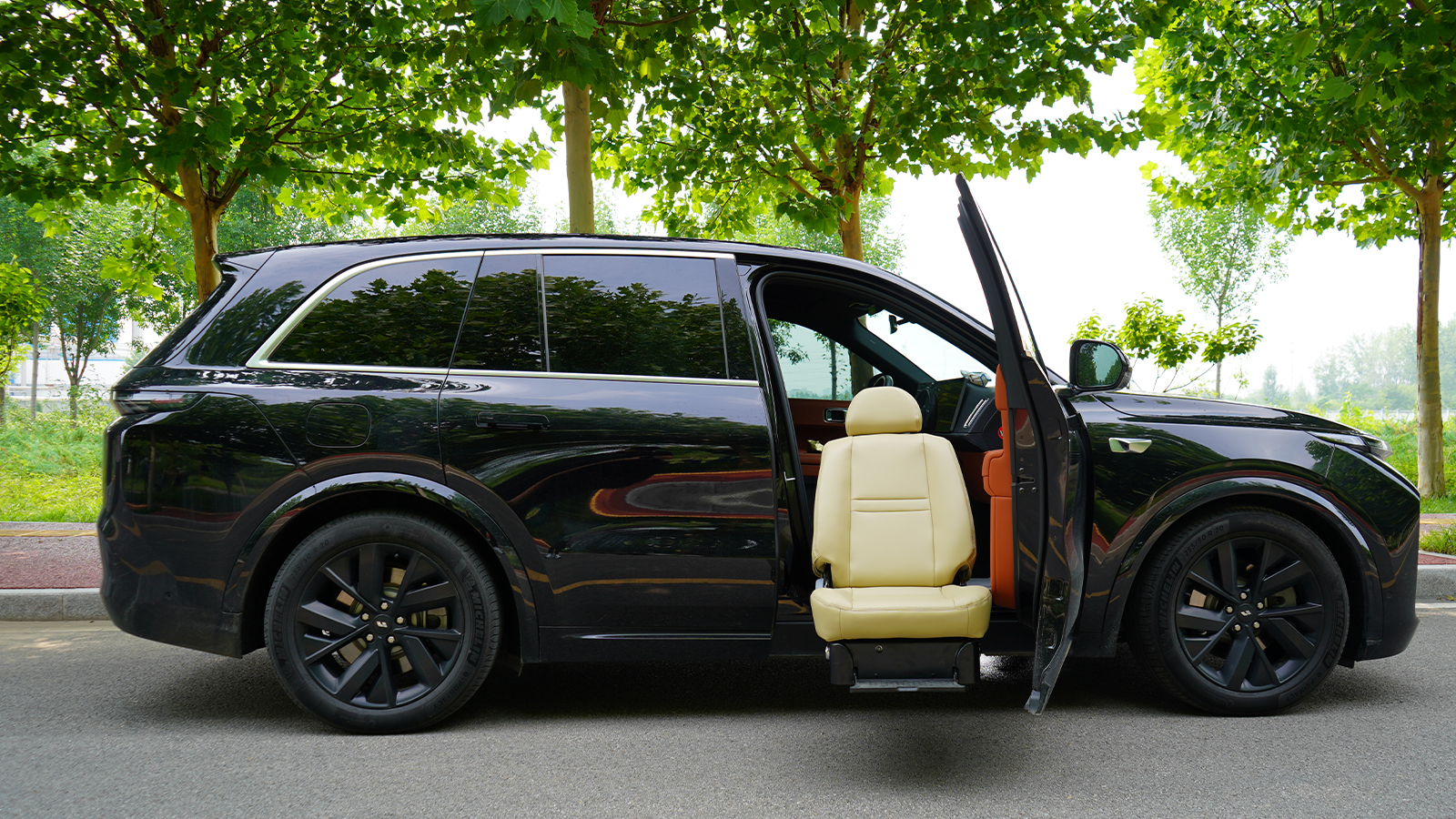 福祉座椅適合腿腳不便的老年人、殘疾人或是行動不便的人群。座椅可以旋轉出車外,并且根擾乘客的需要進行座椅距離地面的上下調節(jié)高度,使乘客更加方便和舒適地上下車。