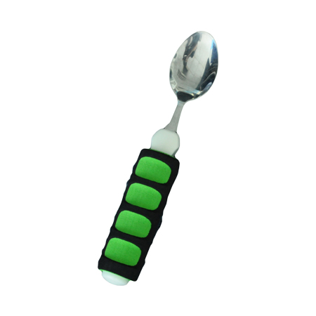 該產(chǎn)品握柄材質(zhì)為防滑材料NBR制成,勺部為不銹鋼。產(chǎn)品間隔設(shè)計可增加手部與握柄間的摩擦,易于抓握。方便指捏、握力減弱的偏癱患者自行進餐。適用于握力不足人群。