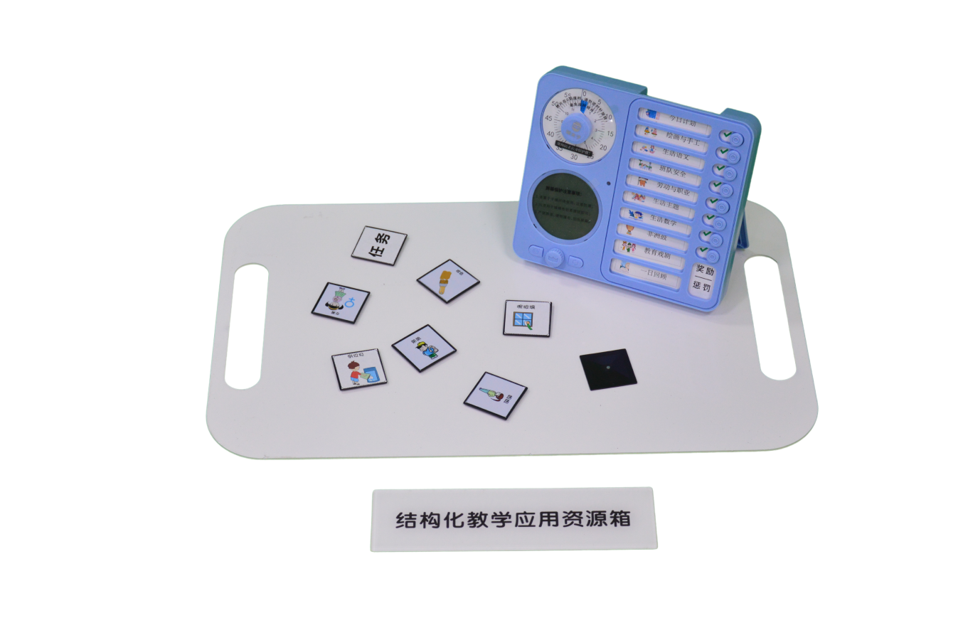 1.適用人群:兒童自閉癥、智力障礙、發(fā)育遲緩等存在語言與認(rèn)知障礙的功能障礙者設(shè)計 2.適用場景:廣泛應(yīng)用于康復(fù)中心、干預(yù)中心、培智學(xué)校、孤獨癥學(xué)校等專業(yè)康復(fù)與教育機構(gòu) 3.產(chǎn)品功能:適合個別化結(jié)構(gòu)教學(xué)中中低功能的孤獨癥兒童發(fā)展個體日常生活中各方面的能力和技能。創(chuàng)造一個易于理解的學(xué)習(xí)環(huán)境,減輕個體的壓力。通過系統(tǒng)化、模塊化的教學(xué)方式,包括原創(chuàng)高清圖片、圖轉(zhuǎn)語電子卡、互動軟件及結(jié)構(gòu)化時間任務(wù)管理器等。