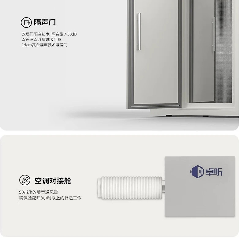 型號(hào):S80 隔聲:室外環(huán)境噪聲≤55dB (A),室內(nèi)本底噪聲≤28dB (A) 環(huán)保:甲醛釋放量≤0.4mg/L,滿足《室內(nèi)裝飾裝修材料及人造板棉制品中甲醛釋放量》 參考標(biāo)準(zhǔn): JJF 1191-2019《測(cè)聽室聲學(xué)特性校準(zhǔn)規(guī)范》 GB 3096-2022《聲環(huán)境質(zhì)量標(biāo)準(zhǔn)》 GB 50325-2020《民用建筑工程室內(nèi)環(huán)境污染控制標(biāo)準(zhǔn)》 適用范圍:聽力體檢、車載聽力篩查