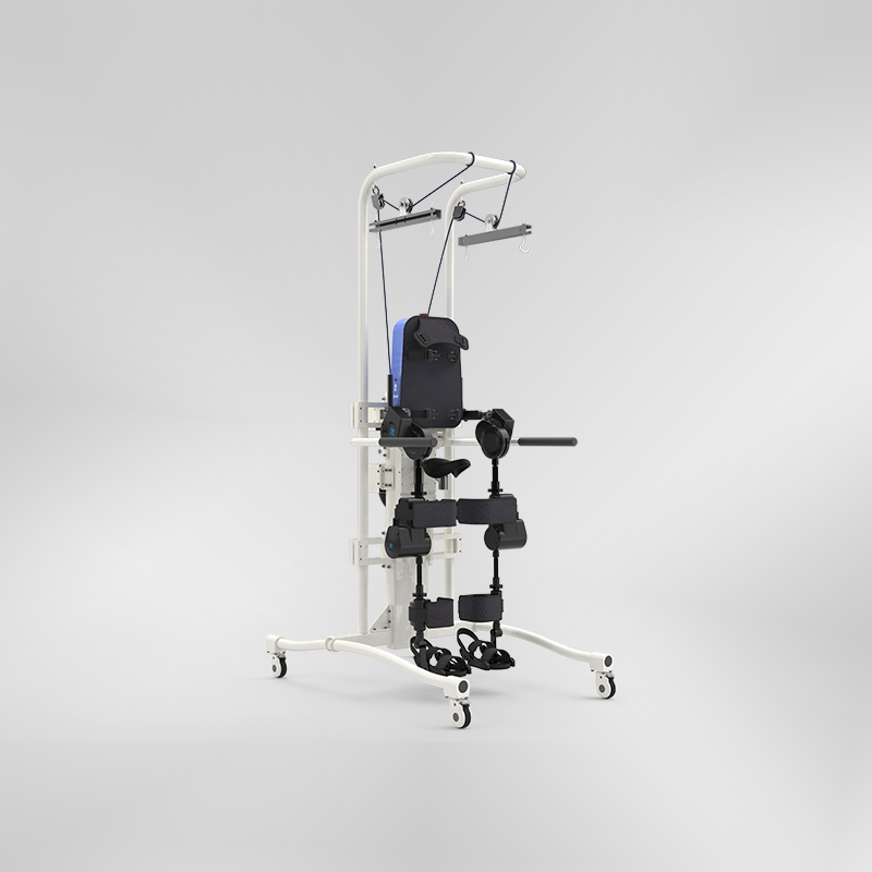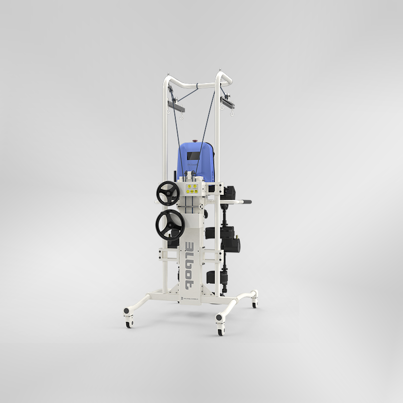 主要是針對中風(fēng)偏癱患者、骨科術(shù)后患者進(jìn)行下肢康復(fù)訓(xùn)練。產(chǎn)品首先采用的仿人體直立狀態(tài)進(jìn)行下肢康復(fù)訓(xùn)練,改變了初期傳統(tǒng)的臥床人工康復(fù);整體采用人工智能、被動康復(fù)訓(xùn)練的模式,整個設(shè)備左右腿、髖關(guān)節(jié)、膝關(guān)節(jié)都可以根據(jù)患者情況單獨進(jìn)行設(shè)置,步幅步頻、康復(fù)訓(xùn)練時間都可以結(jié)合醫(yī)師指導(dǎo)意見進(jìn)行設(shè)置,而且康復(fù)數(shù)據(jù)可以記錄并從后臺傳給醫(yī)生,更好的指導(dǎo)康復(fù)訓(xùn)練或研究。另外整體采用吊裝減重設(shè)計,滿足不同康復(fù)階段的負(fù)重要求