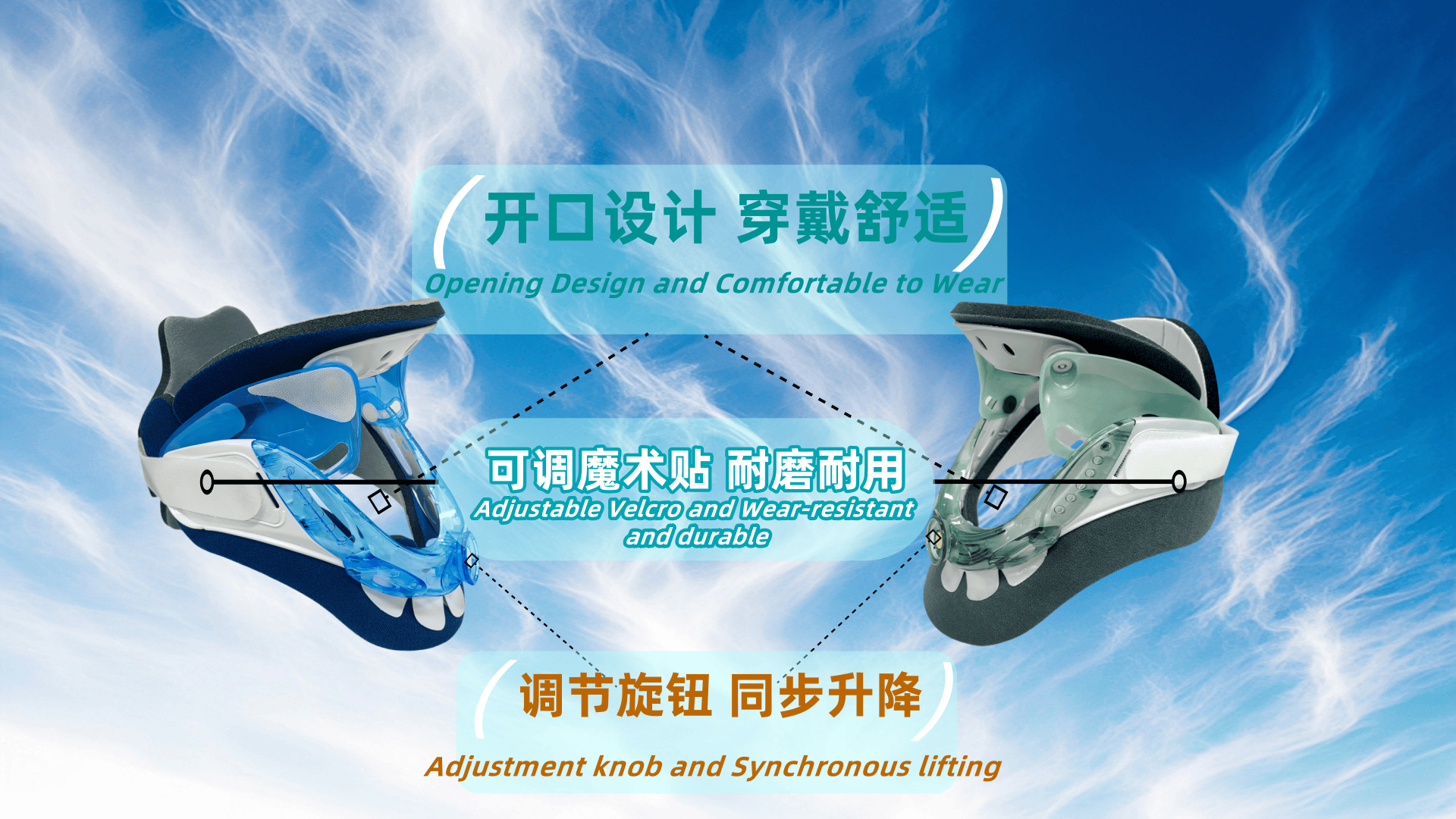 適應(yīng)癥狀: 固定頭部,以緩解頸部疼痛并促進(jìn)受傷的頸部肌肉、肌腱和其他結(jié)構(gòu)的愈合 特點(diǎn): 1.塑料外殼設(shè)計(jì),為頸部提供穩(wěn)定支撐 2.旋鈕滑動(dòng)設(shè)計(jì),便于調(diào)節(jié)圍長 3.高度可調(diào)節(jié),適合廣泛人群使用 4.軟海綿襯墊,佩戴舒適