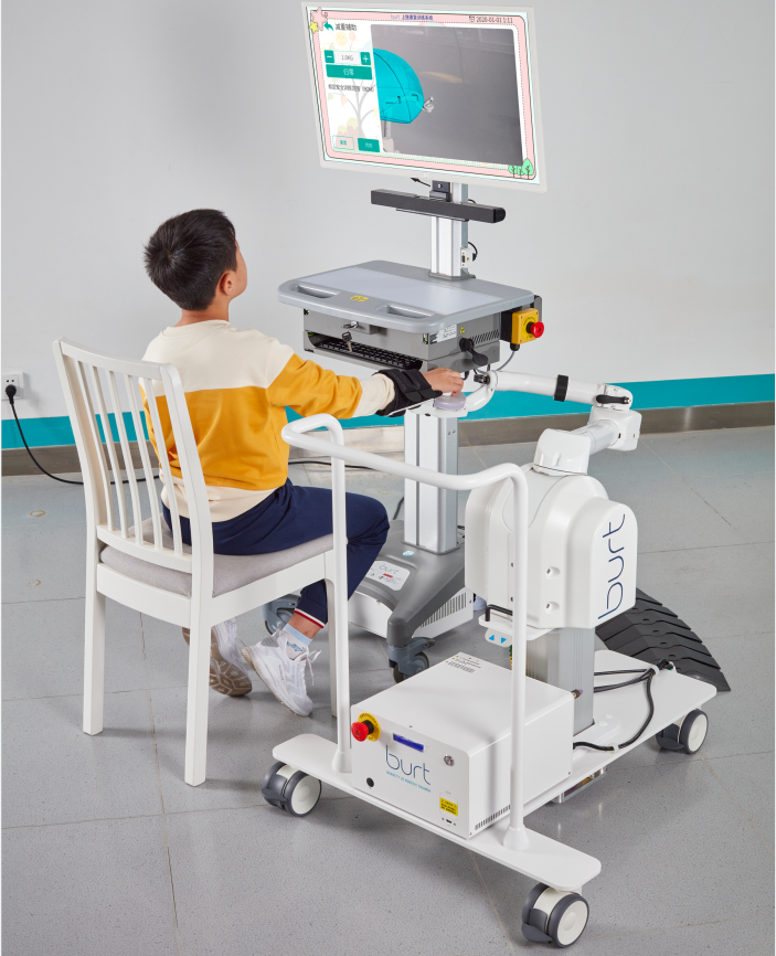 這款國產(chǎn)末端牽引式上肢康復(fù)機器人,基于神經(jīng)可塑性原理,可改善側(cè)支循環(huán),促進(jìn)病灶修復(fù)及正常組織代償作用,從而建立正確的運動模式。Burt上肢康復(fù)訓(xùn)練系統(tǒng)適用于肌力0-5級患者使用,多款訓(xùn)練模式結(jié)合情景游戲,增強患者訓(xùn)練反饋。