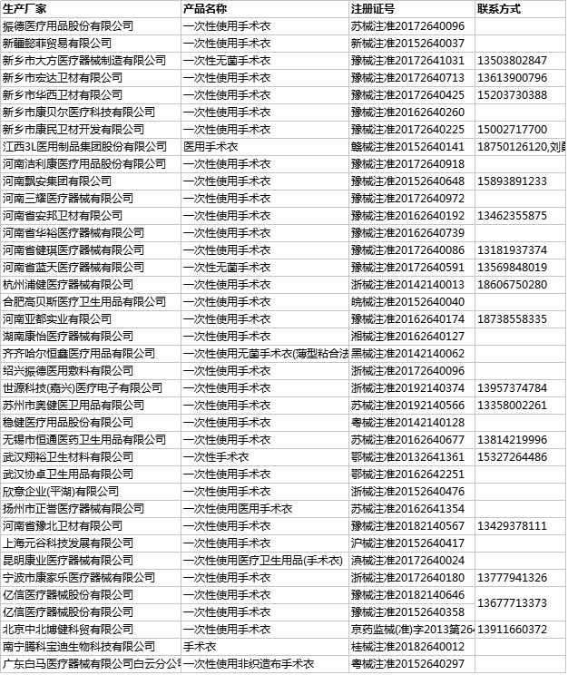 以下為口罩、防護(hù)服、消毒液等相關(guān)防護(hù)用品生產(chǎn)廠家信息匯總,供有需要的單位聯(lián)絡(luò)參考(*提醒:各采購(gòu)單位和個(gè)人務(wù)必不要以非醫(yī)用口罩等替代,但凡未經(jīng)藥監(jiān)局系統(tǒng)批準(zhǔn)的產(chǎn)品,都不具備醫(yī)用資質(zhì)和效果。)