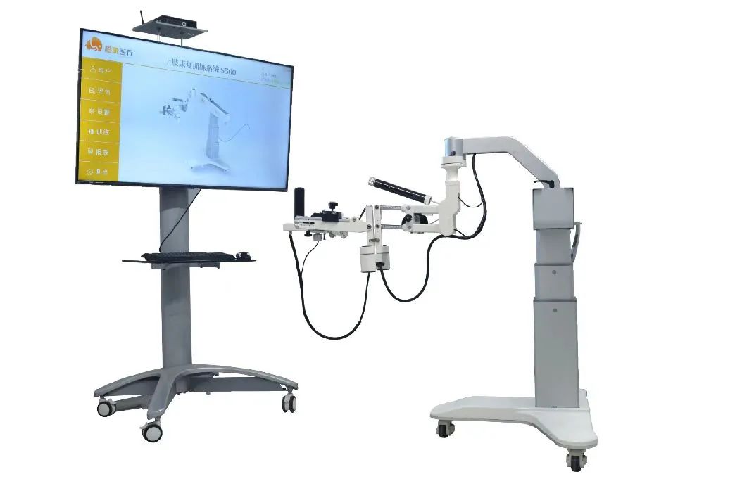 上肢康復(fù)訓(xùn)練系統(tǒng),上肢康復(fù)訓(xùn)練系統(tǒng)是以神經(jīng)可塑性原理為理論基礎(chǔ),以實(shí)時(shí)模擬人體上肢運(yùn)動(dòng)規(guī)律而設(shè)計(jì)的一款先進(jìn)的上肢康復(fù)訓(xùn)練設(shè)備?;颊咄ㄟ^(guò)重復(fù)訓(xùn)練,循序漸進(jìn)治療,可以有效提高患者的上肢協(xié)調(diào)性、肌肉力量、肩肘腕等關(guān)節(jié)活動(dòng)范圍和抓握的力量等上肢運(yùn)動(dòng)能力;幫助因腦卒中、腦外傷、脊髓損傷等導(dǎo)致上肢功能障礙的患者重新學(xué)習(xí)已失去的上肢功能,通過(guò)不斷的訓(xùn)練促進(jìn)神經(jīng)與大腦的連接。