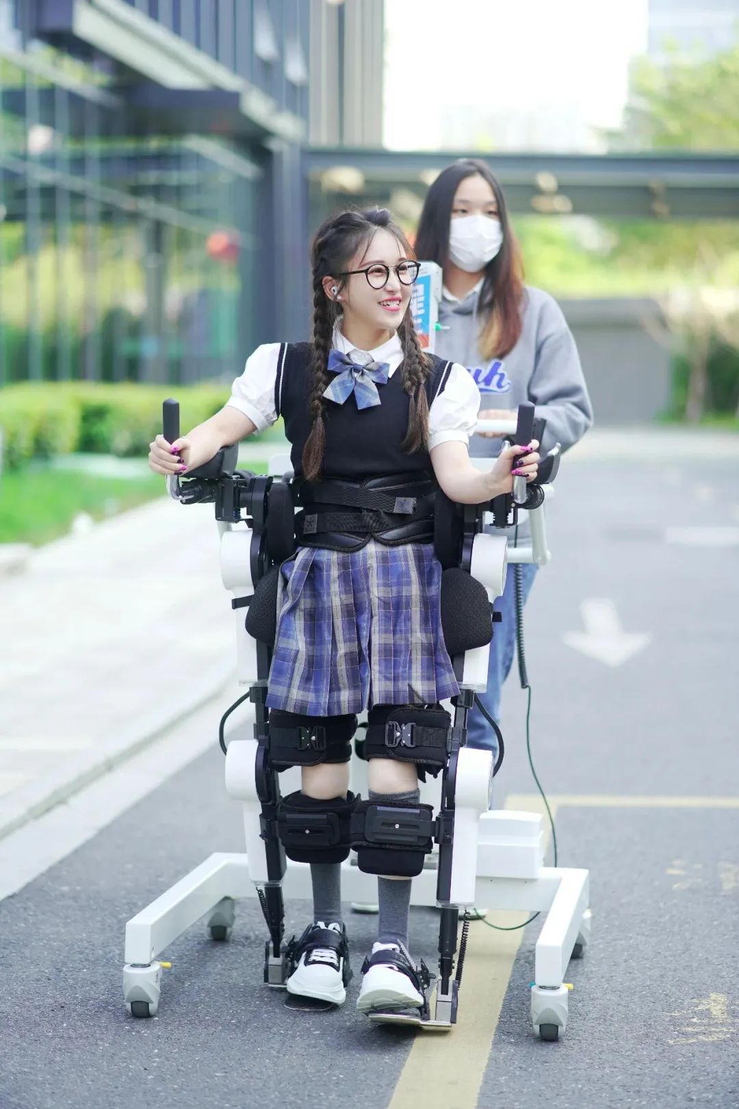 侯羿朵是一名完全性脊髓損傷患者,她使用外骨骼機器人康復已有三年的時間了,她說:“我是屬于腰椎一段粉碎性骨折壓迫神經(jīng)導致的下肢癱瘓,兩條腿沒有肌張力,所以肌肉萎縮也很嚴重,外骨骼可以幫助我運動,幫助我整個消化系統(tǒng)更好,減少了我很多并發(fā)癥的狀況。我希望自己坐在輪椅上也能長久保持一個健康的身體狀態(tài),所以我會堅持康復,只有保持身體健康,我才能給自己的人生有更多創(chuàng)造價值的機會,我現(xiàn)在在做點短視頻自媒體,所以未來我也會一直努力去分享我的一些生活經(jīng)驗和康復經(jīng)驗給網(wǎng)友,給大家提供我正能量的情緒價值。”