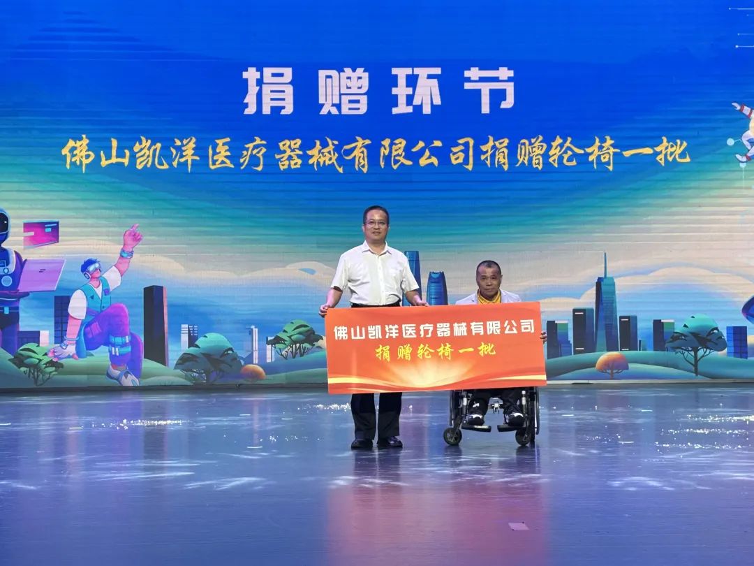 今年在東莞市文化館星劇場舉辦的輔具捐贈儀式上,佛山凱洋醫(yī)療器械有限公司為殘疾人捐贈輪椅一批,東莞市殘聯(lián)副理事長王錦繡為其頒發(fā)了牌匾。