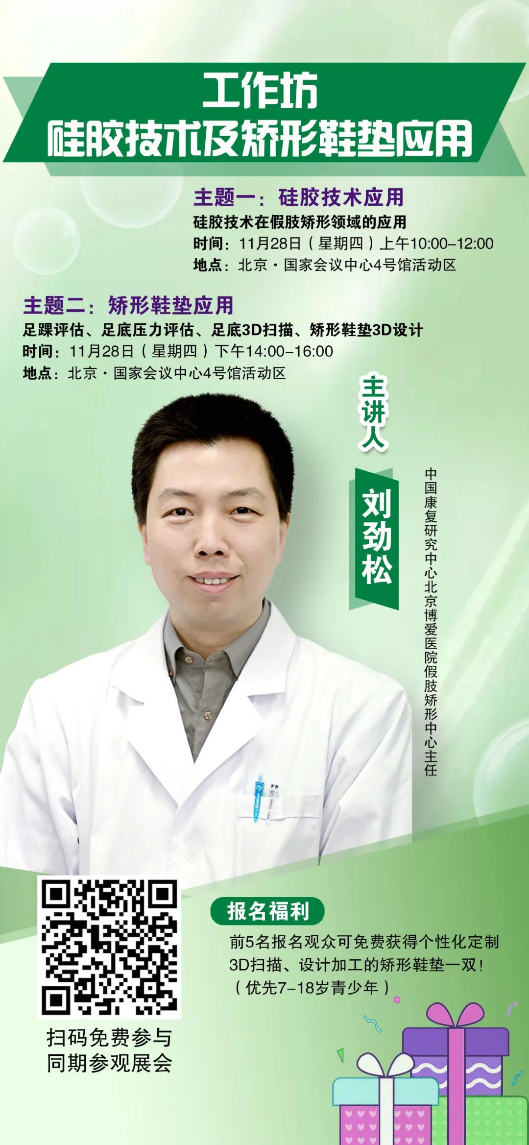 前5名報名觀眾可免費獲得個性化定制3D掃描、設(shè)計加工的矯形鞋墊一雙?。▋?yōu)先7-18歲青少年)