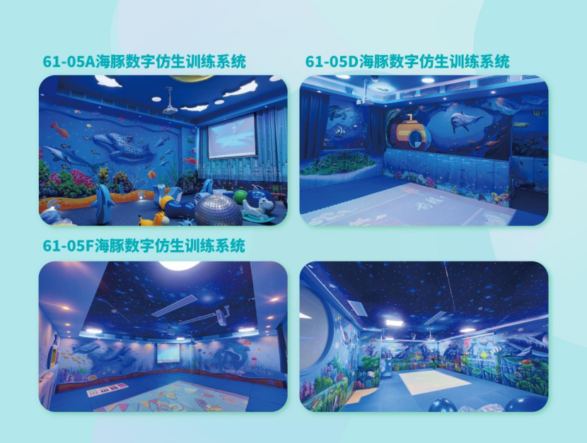 61-05系列海豚數(shù)字仿生訓(xùn)練系統(tǒng)是基于數(shù)字化仿生高頻海豚音為大環(huán)境大背景的綜合視聽系統(tǒng),核心專利技術(shù)為“海豚仿生信號(hào)發(fā)生器”,該發(fā)生器通過數(shù)字仿生學(xué)技術(shù)模仿海豚等人類親和動(dòng)物在不同生理狀態(tài)下發(fā)出的對(duì)人體尤其是中樞神經(jīng)系統(tǒng)有協(xié)調(diào)和促進(jìn)功能的聲源信號(hào)。通過海豚仿生學(xué)有效速率轉(zhuǎn)換,通過輸出控制臺(tái)在特定的視聽環(huán)境中隨機(jī)變頻轉(zhuǎn)換成人類可聽到的頻率進(jìn)行投放,通過結(jié)合多媒體數(shù)字投影、數(shù)字調(diào)制燈光組成沉浸式的視聽覺整合環(huán)境,讓受訓(xùn)者在“沉浸式”環(huán)境中以安寧、放松、平靜的狀態(tài),接受視、聽、觸覺等多種視聽感知覺整合刺激,以達(dá)到提升康復(fù)訓(xùn)練的目的。