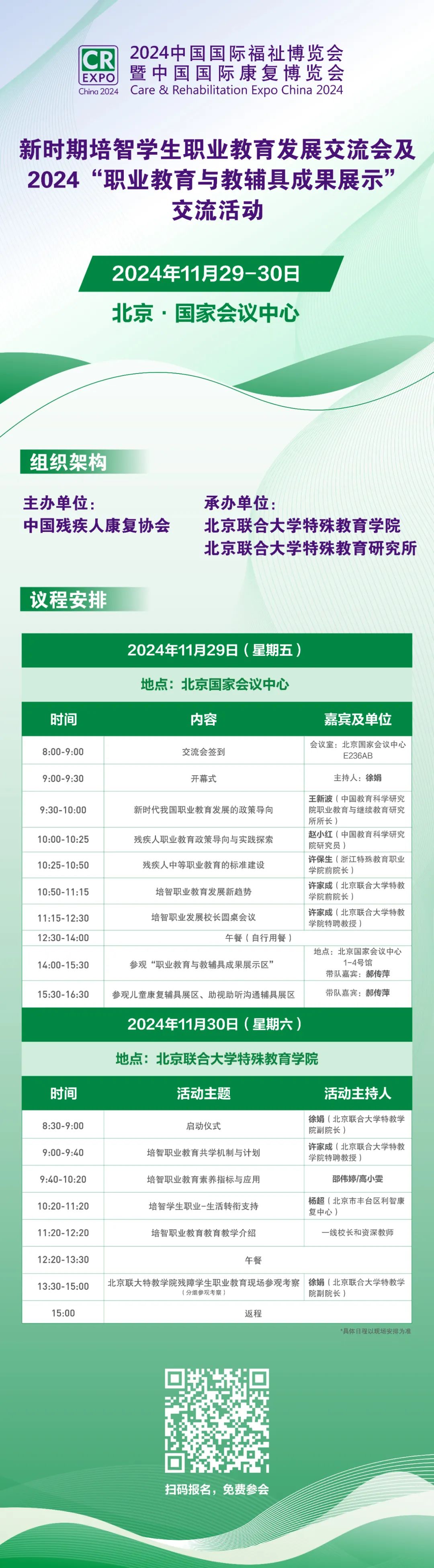 點(diǎn)擊鏈接,查看參會(huì)通知→關(guān)于舉辦新時(shí)期培智學(xué)生職業(yè)教育發(fā)展交流會(huì)及2024“職業(yè)教育與教輔具成果展示”交流活動(dòng)的通知