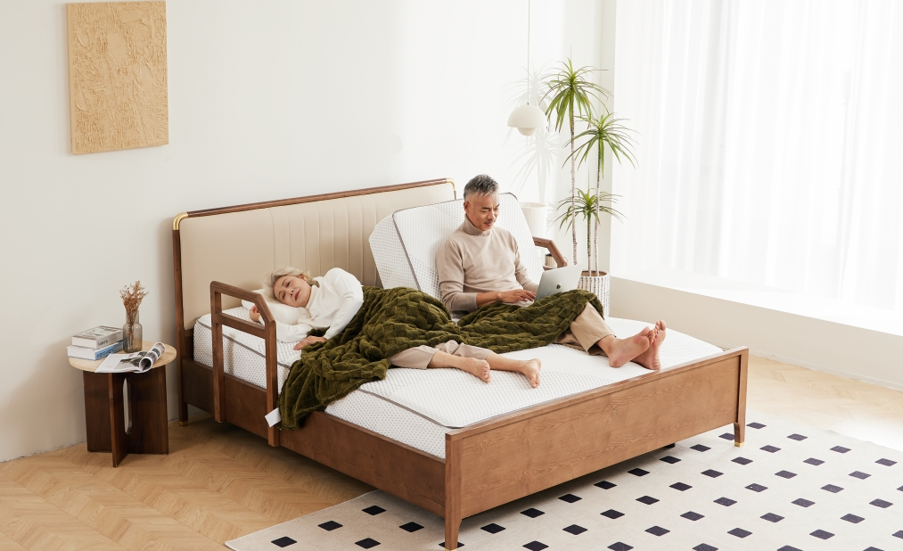 舒眠H921屬于適老化電動(dòng)床,單人1.2米寬度尺寸,更加舒適。具備背部升降、腿部升降和整床升降,可滿(mǎn)足老人日常起居,方便上下床;以及后期處于護(hù)理階段,也方便家人照護(hù)。兩側(cè)扶手,便于抓握和儲(chǔ)物,后期根據(jù)老人需求,也可升級(jí)長(zhǎng)護(hù)欄。