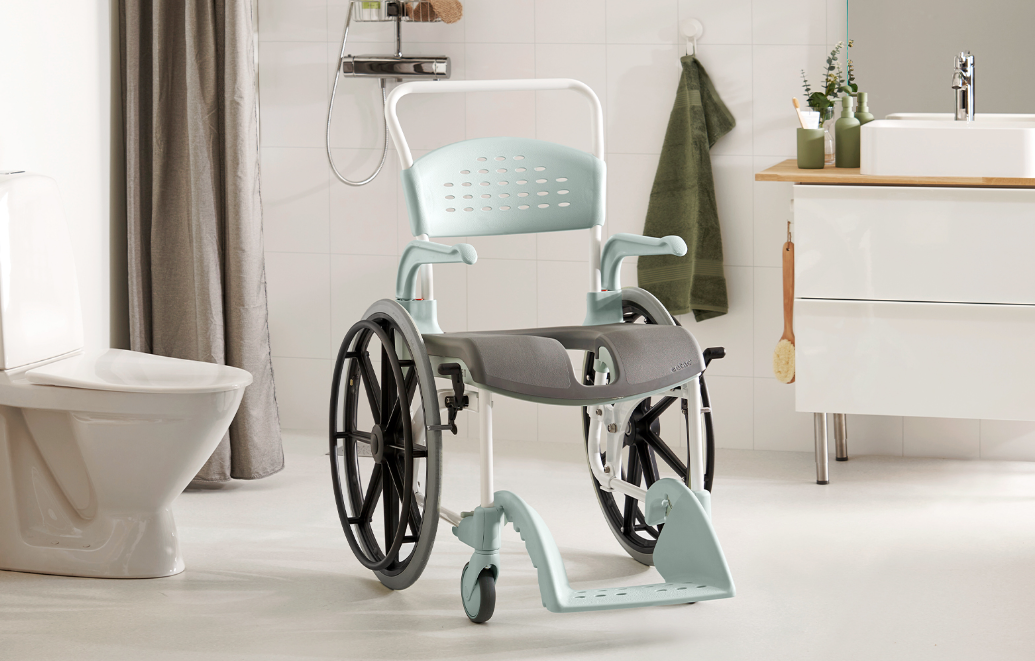 Etac Clean 24"是一款自推型的移動(dòng)式浴廁多功能椅,操作方便,適合那些能獨(dú)立操作椅子進(jìn)衛(wèi)生間并渴望獨(dú)自完成沐浴坐便需求的人使用。它兼具洗澡椅、坐便椅、馬桶增高椅和室內(nèi)輪椅四合一的功能特點(diǎn),整體車(chē)架一根鋼管設(shè)計(jì),無(wú)任何焊接,保證了在浴室環(huán)境中不被腐蝕和氧化。Etac Clean的大車(chē)身設(shè)計(jì),使用者可以利用它來(lái)方便的完成空間轉(zhuǎn)移的需求。