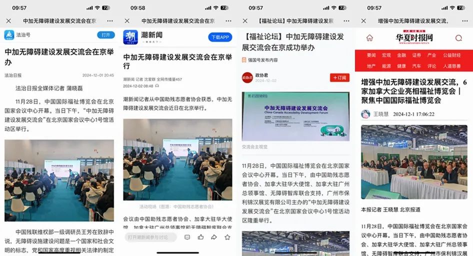 2024年11月28日,中國國際福祉博覽會(huì)在北京國家會(huì)議中心開幕。當(dāng)日下午,由中國助殘志愿者協(xié)會(huì)、加拿大駐華大使館、加拿大駐廣州總領(lǐng)事館、無障礙智庫聯(lián)合支持,廣州市保利錦漢展覽有限公司主辦的“中加無障礙建設(shè)發(fā)展交流會(huì)”在北京國家會(huì)議中心1號(hào)館活動(dòng)區(qū)隆重舉行。
